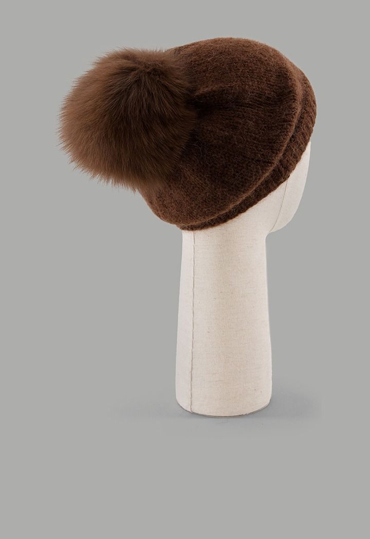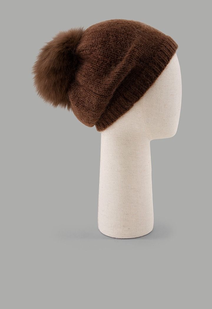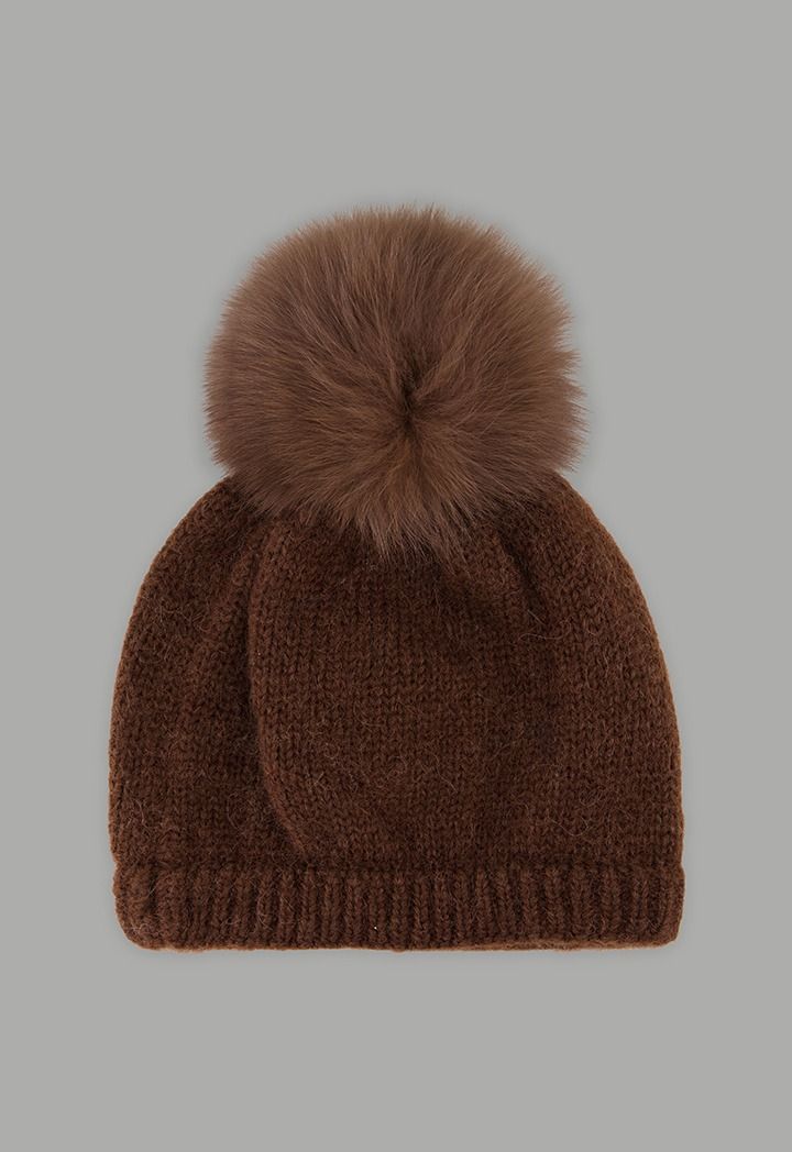 A pom-pom embellished beanie hat, perfect for keeping you warm on winter days.