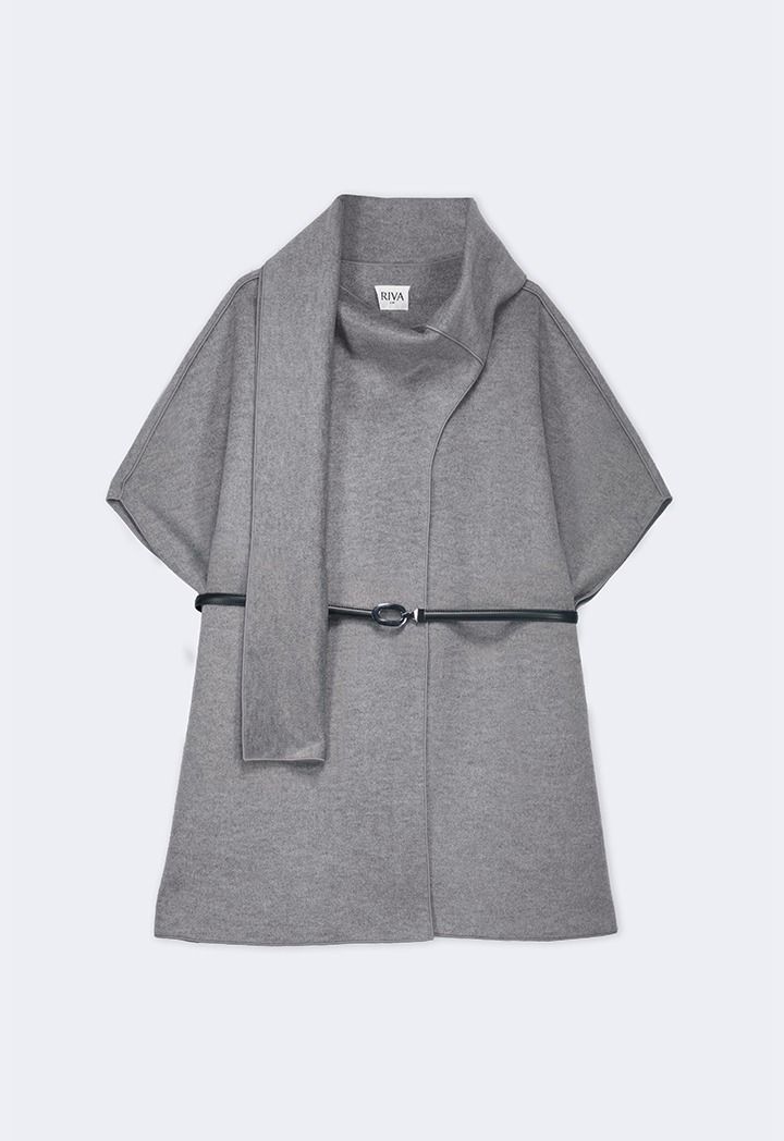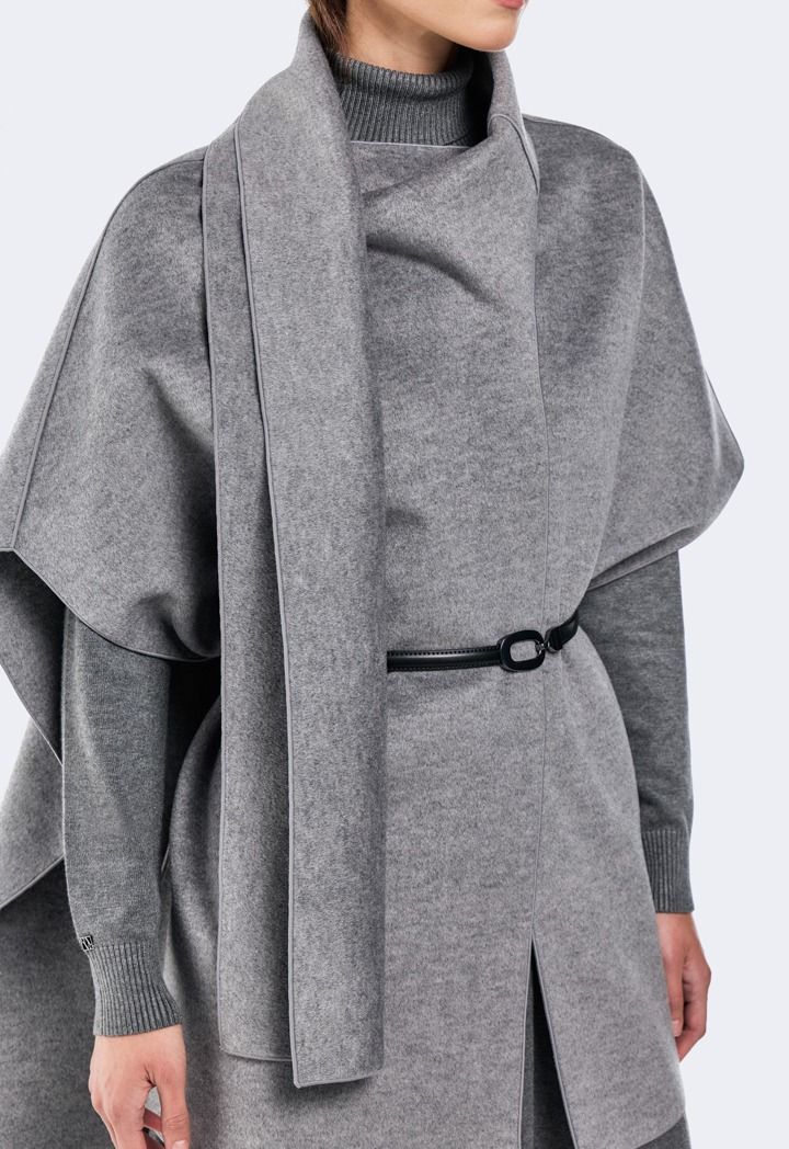 A unique fusion of materials, this poncho blends everyday comfort with its draped details.
