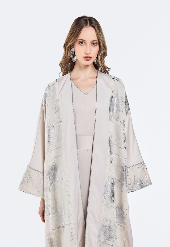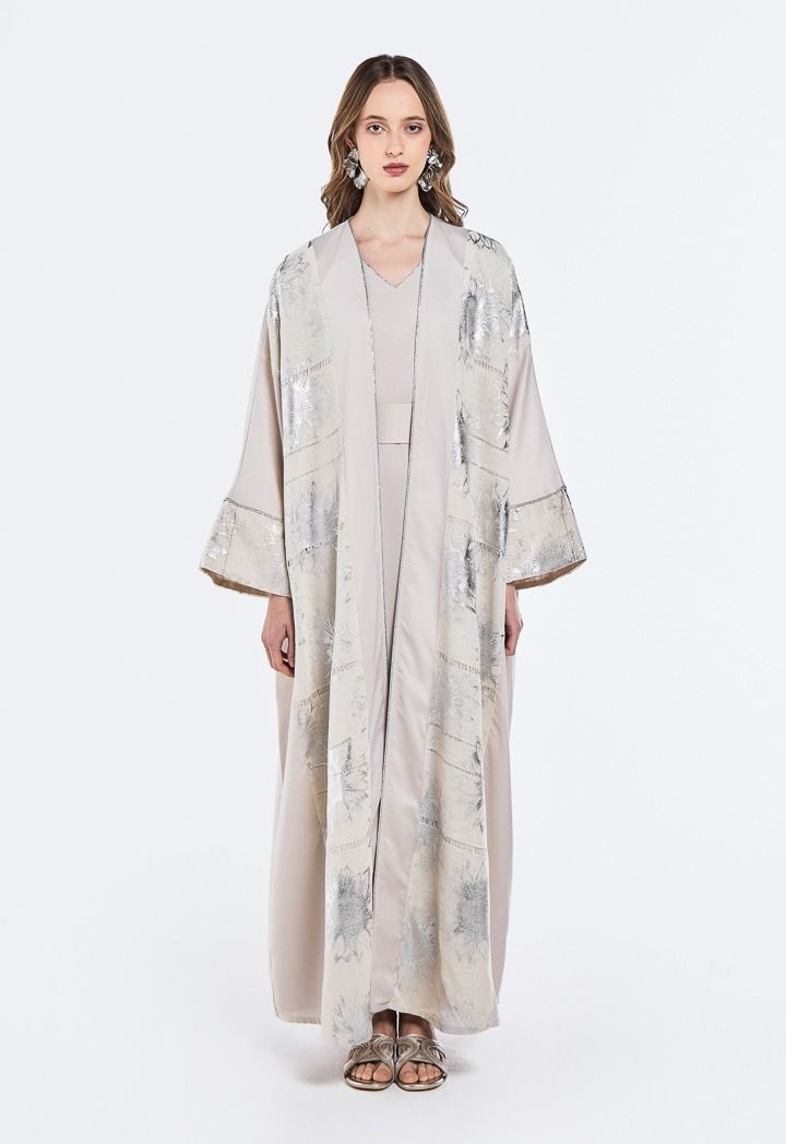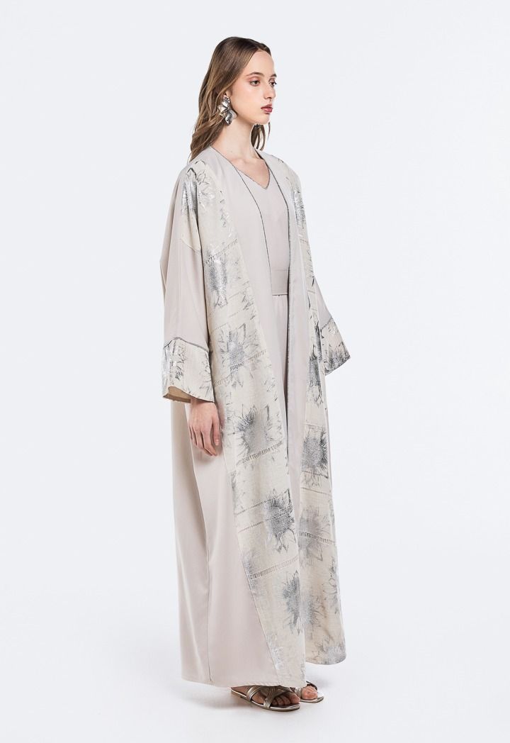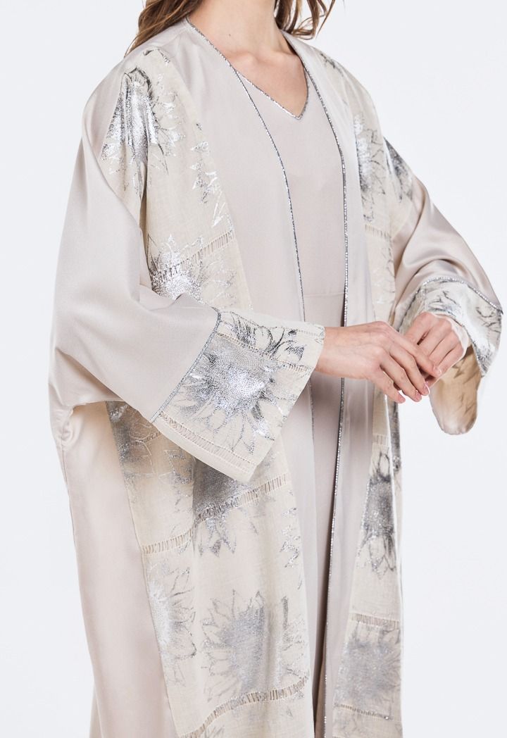 Stand out with a luxurious look in this abaya and dress set featuring long sleeves that blend elegance and femininity in one stunning design perfect for any occasion.