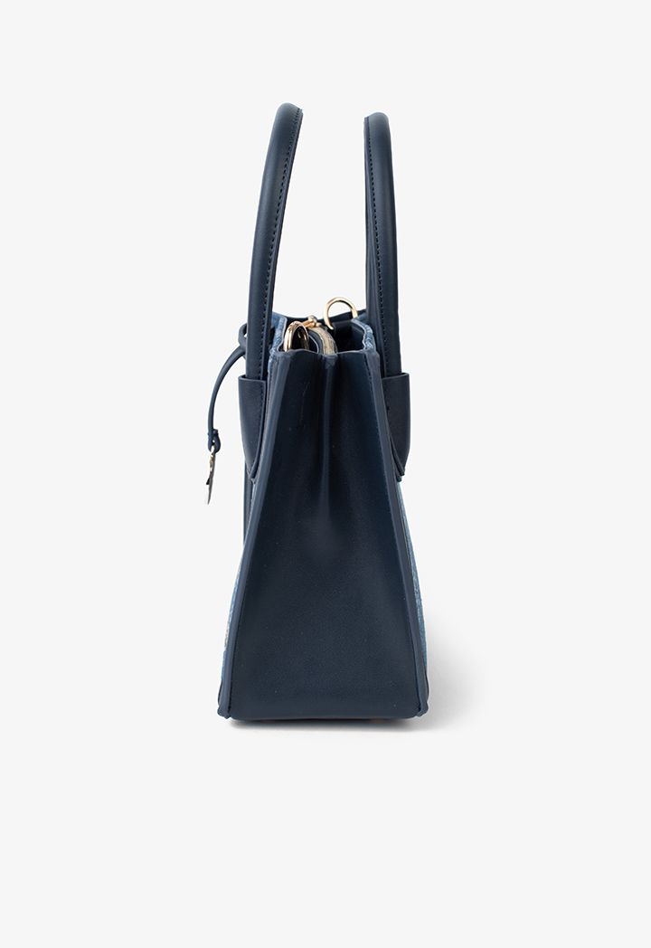 Carry this trendy bag for a revamped style statement. Fashioned with jacquard pattern, it exudes a fine look. It features top carry handles, two main compartment and a sling shoulder strap that lends utmost utility.