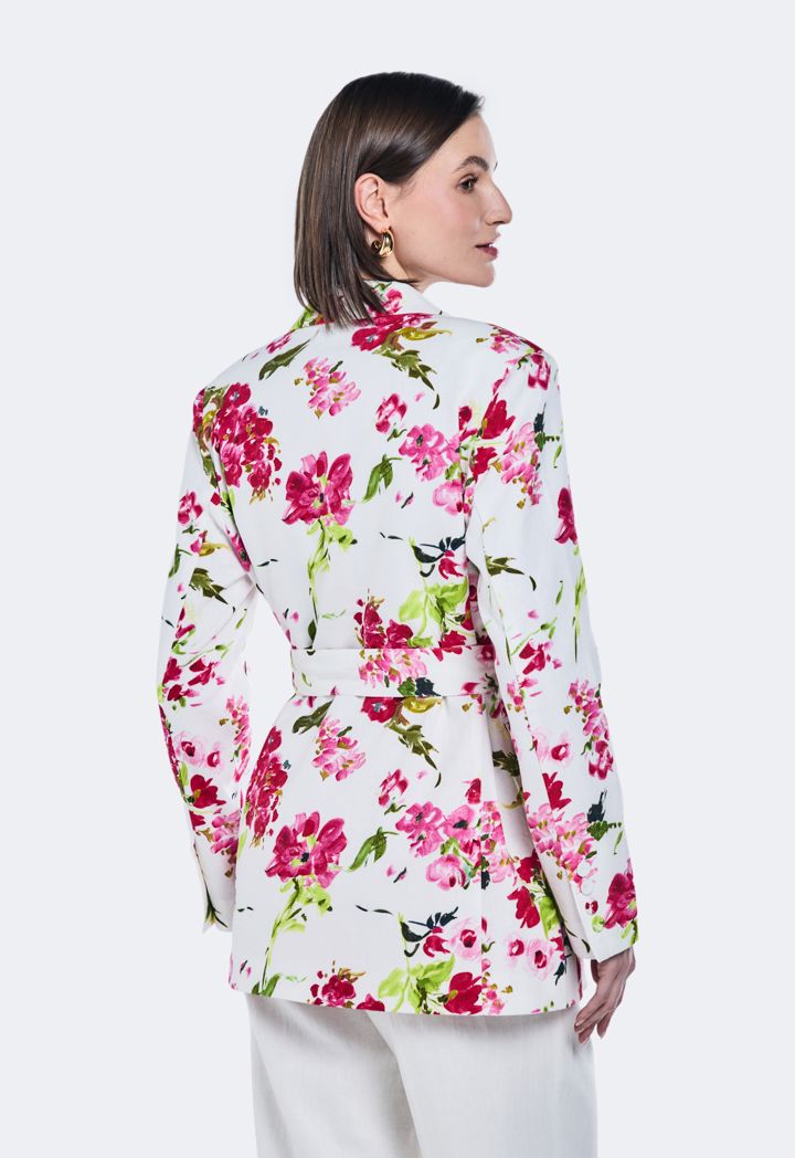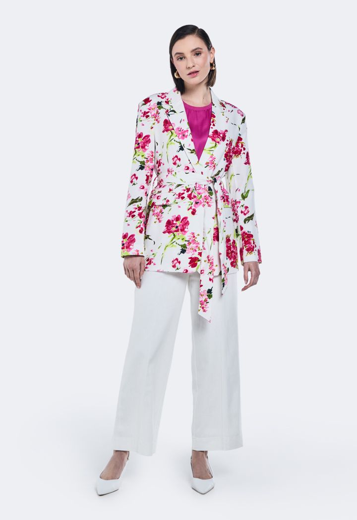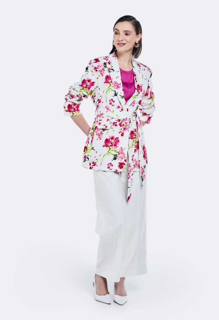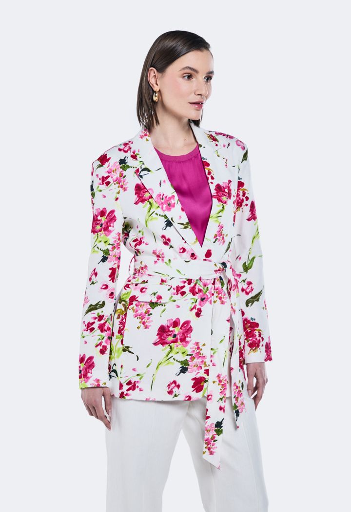 Printed Belted Linen Blazer |