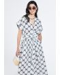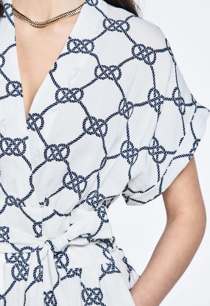 Printed Belted V-Neck Dress |