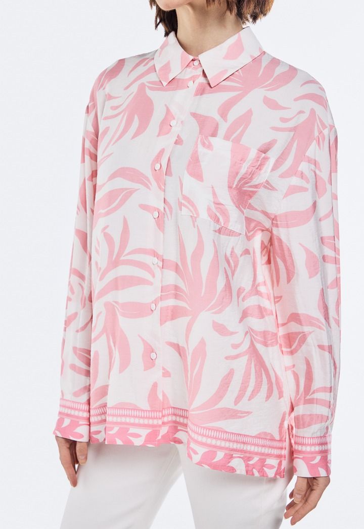 Design: Printed, Crinkled, Drop Shoulder, Patch Pocket