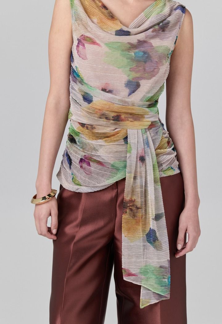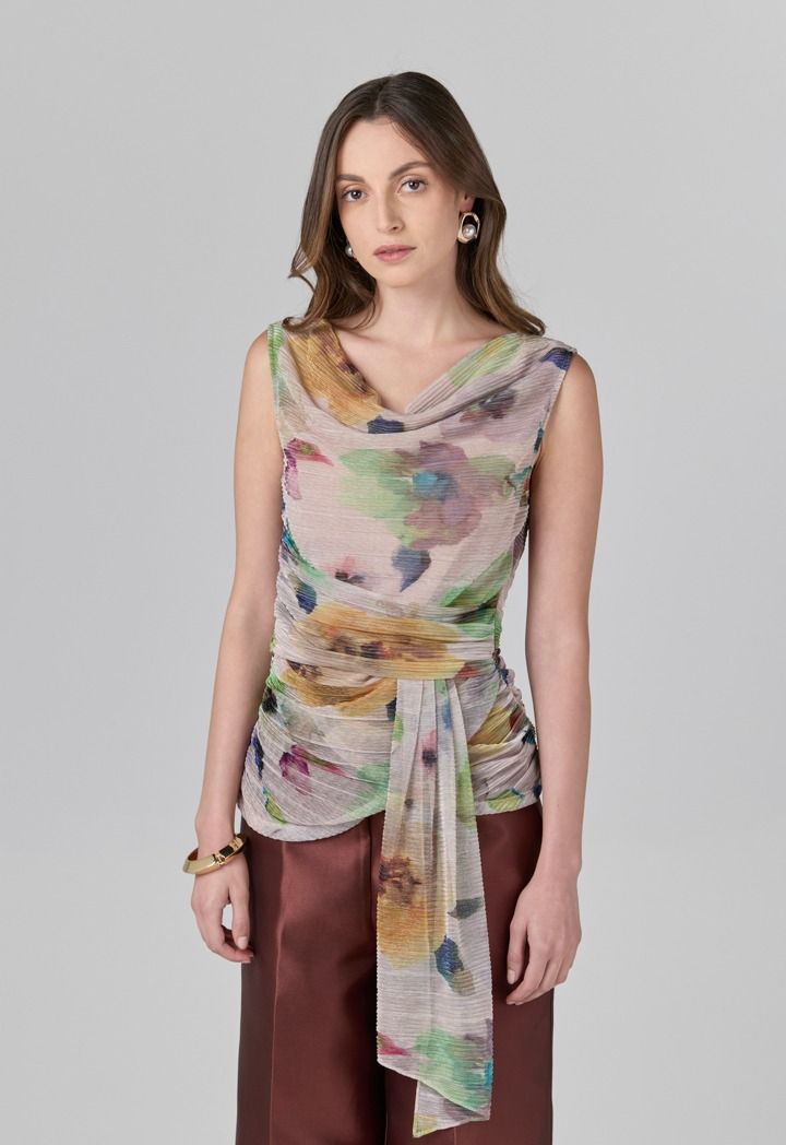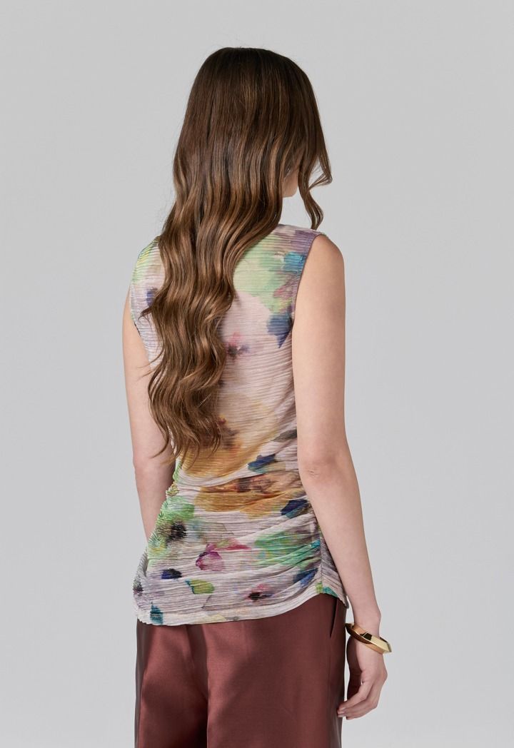 Printed Crinkled Sleeveless Top |