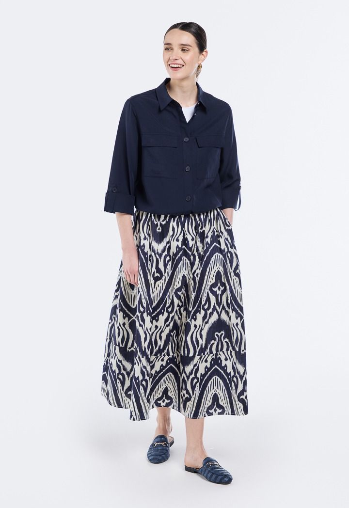 The unique print and flared design offer graceful movement and effortless charm. Pair it with a top for a perfectly coordinated look that’s ideal for any occasion.
