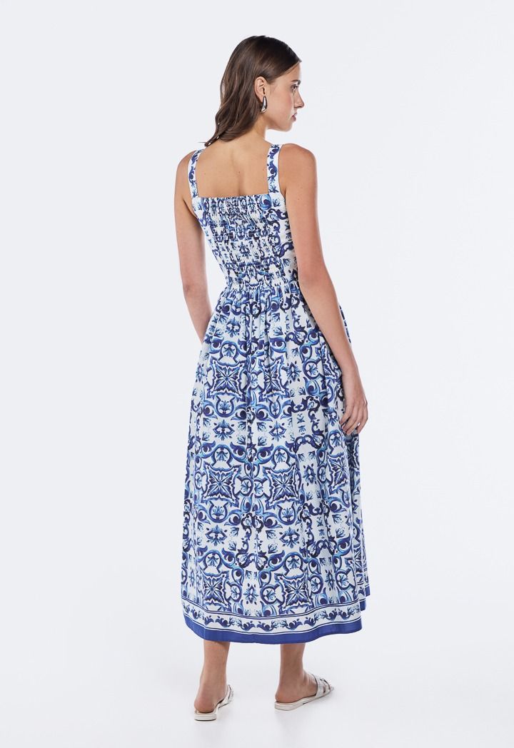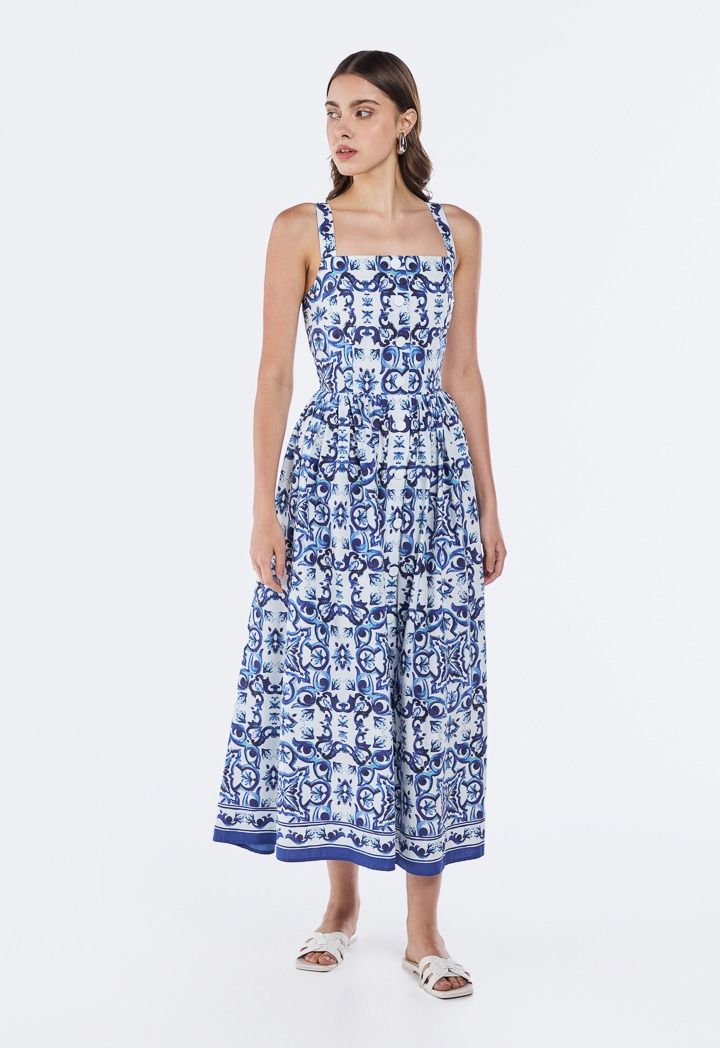 Printed Gathered Waist Dress |