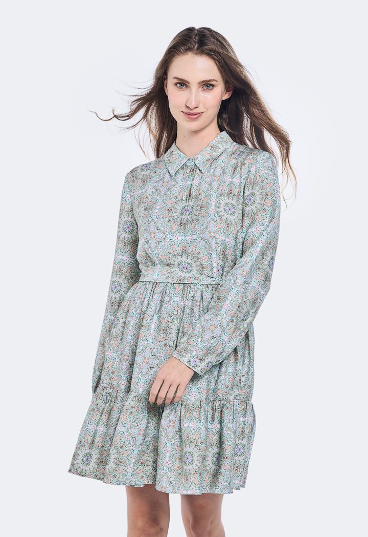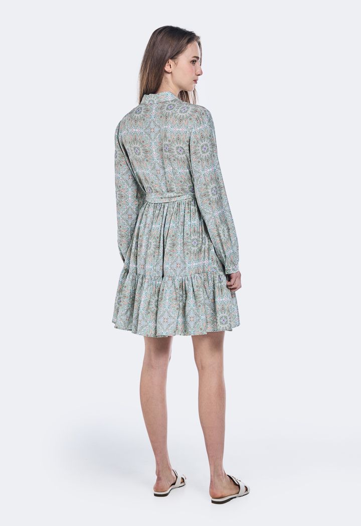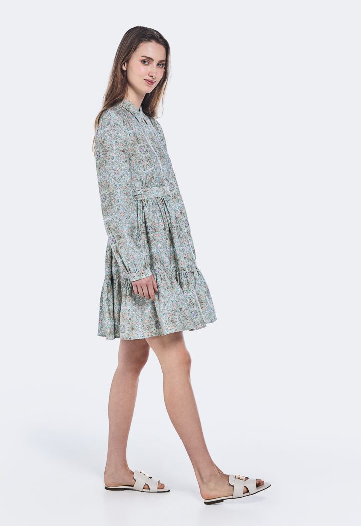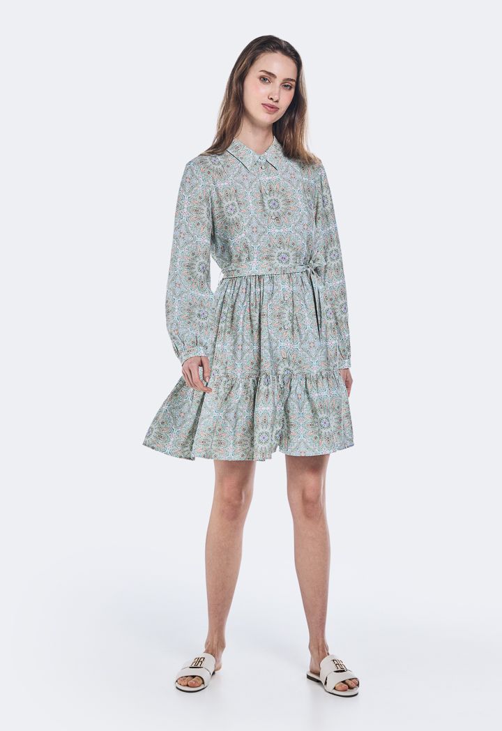 Printed Long- Sleeved Dress |