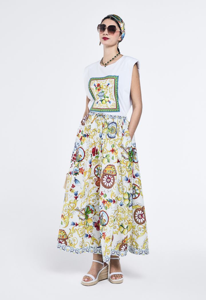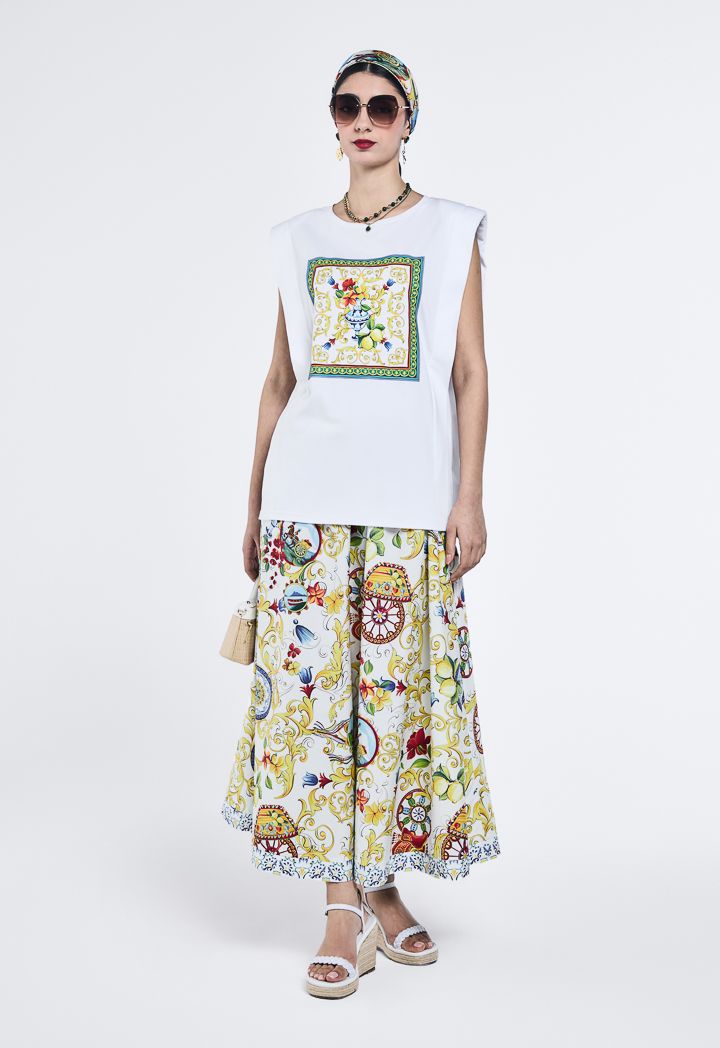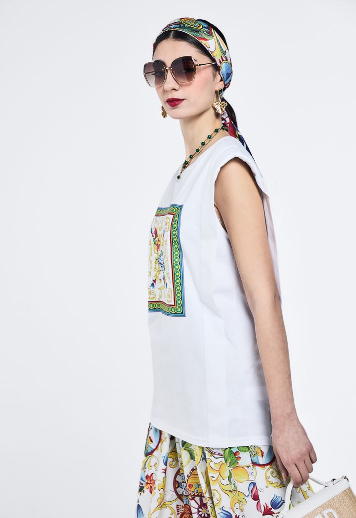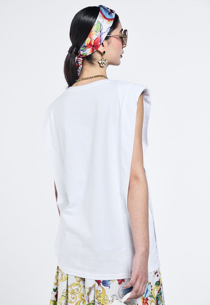 Printed Motif T-Shirt With Shoulder Pad |
