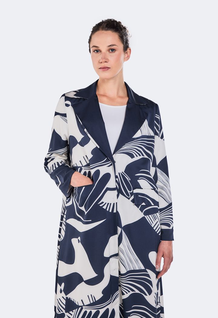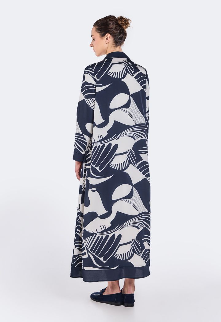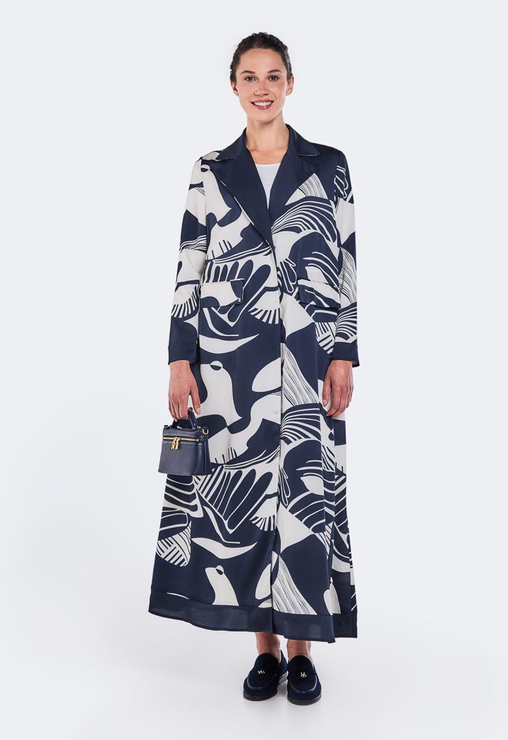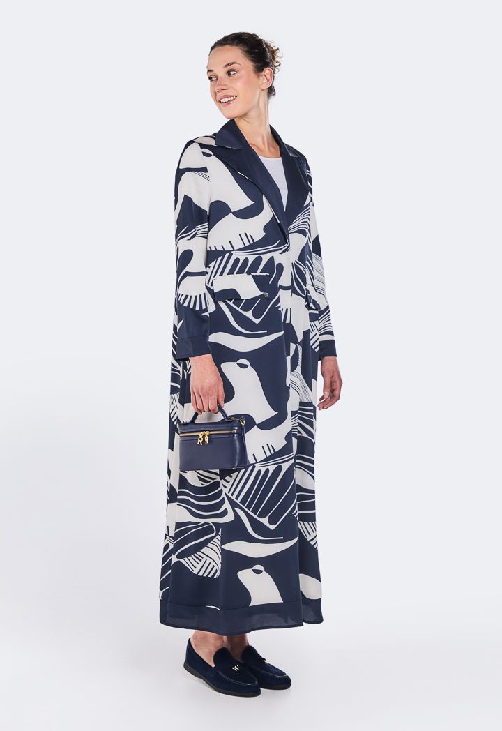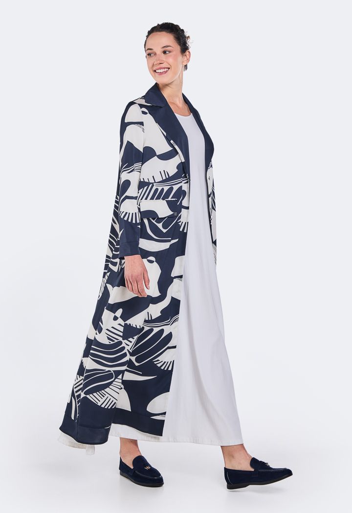 Printed Notched Collar Abaya |