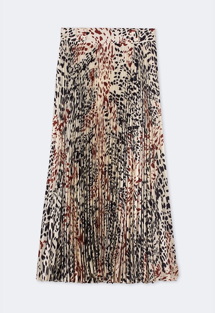 Printed Pleated Flared Skirt |