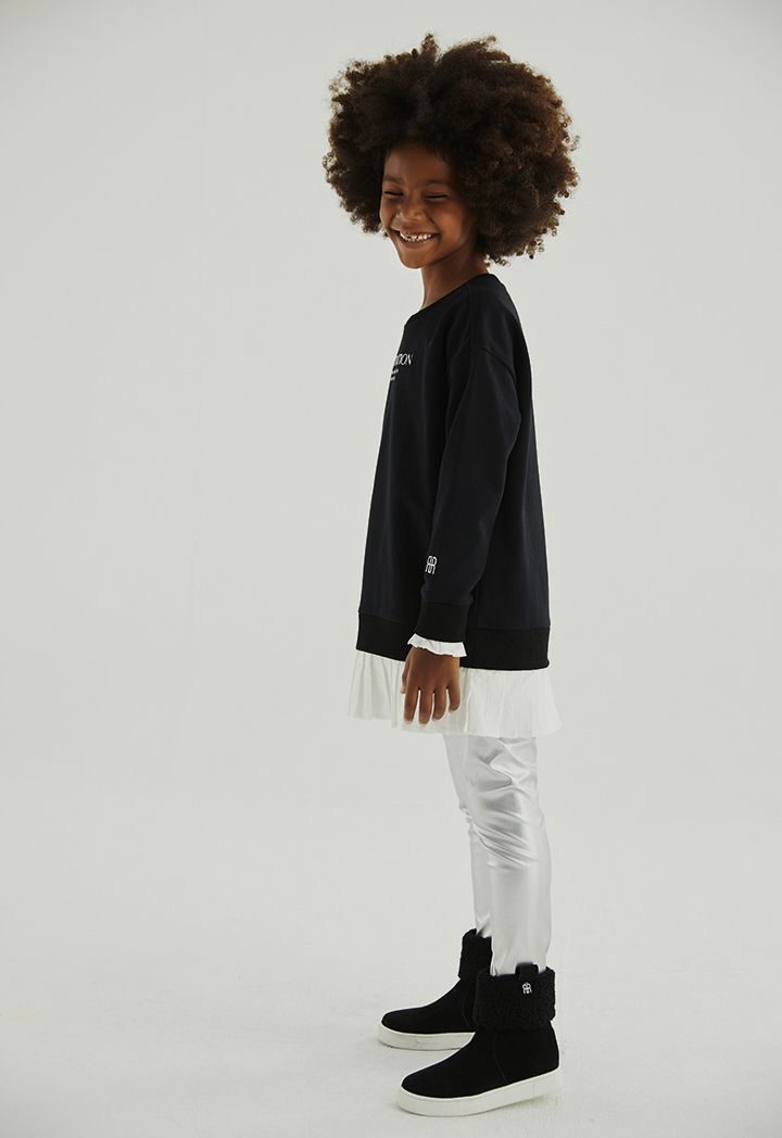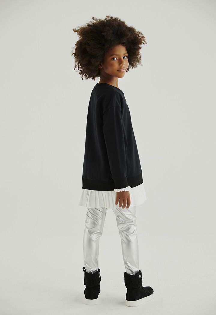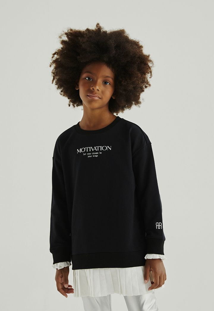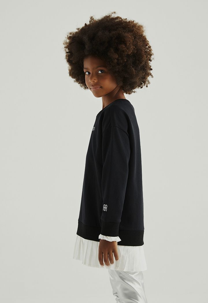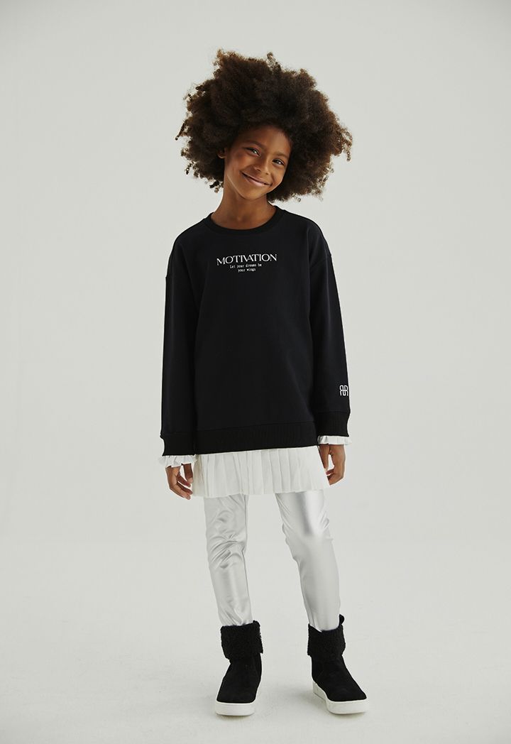 A simple sweater that features a printed, pleated hems and long sleeves design.