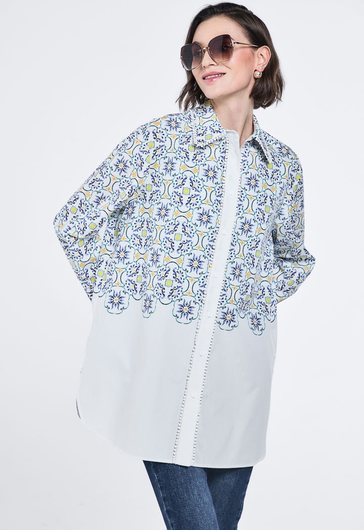 Printed Pom Pom Lace Shirt |