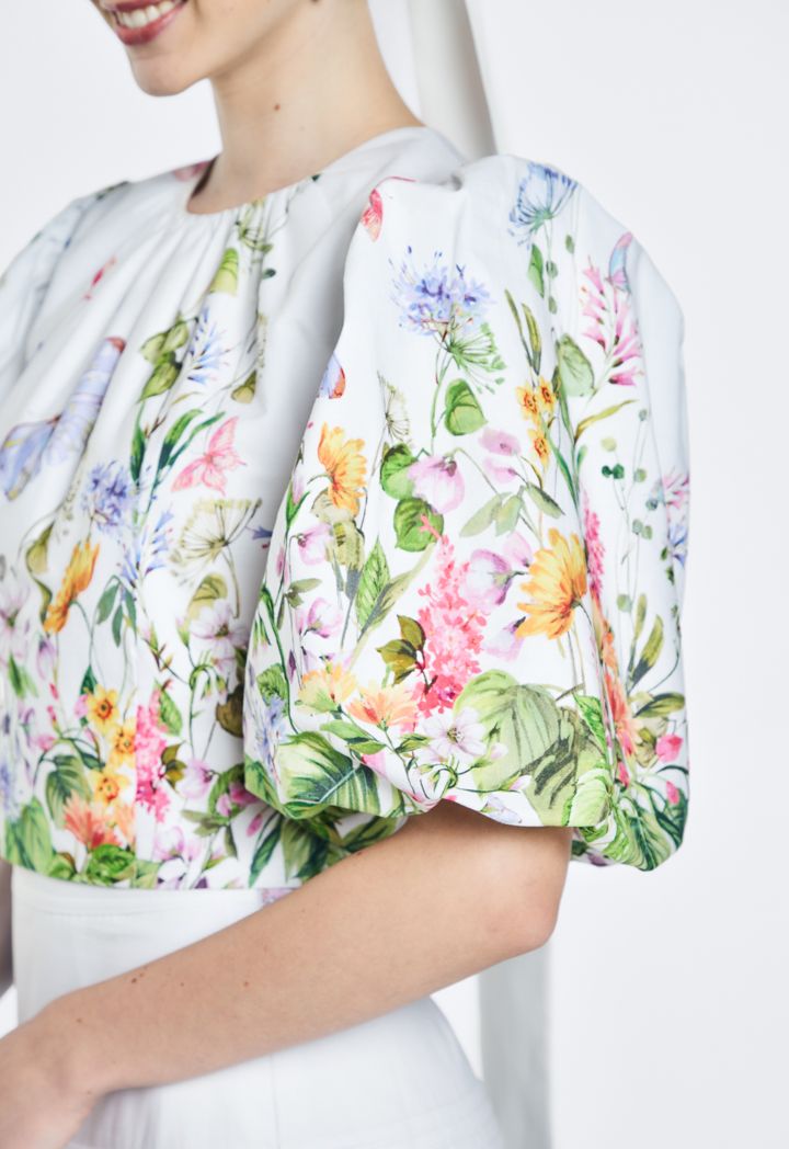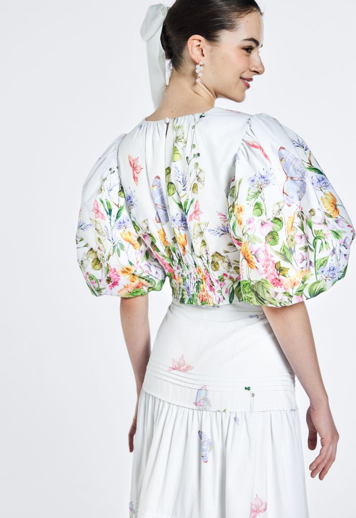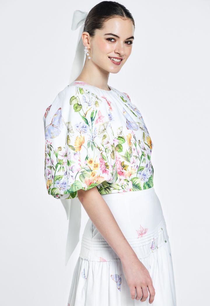 Printed Puff Short Sleeves Top |