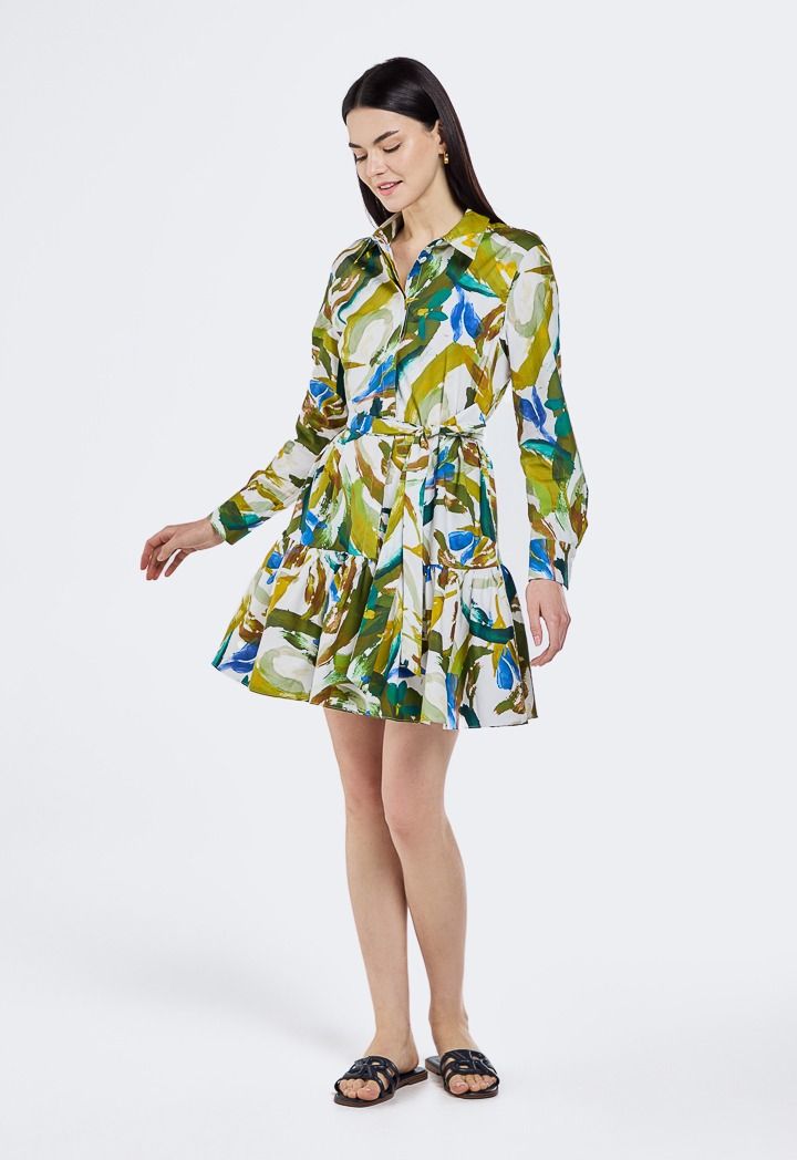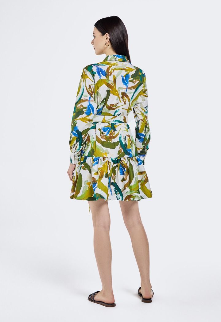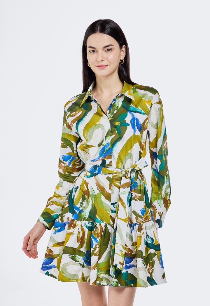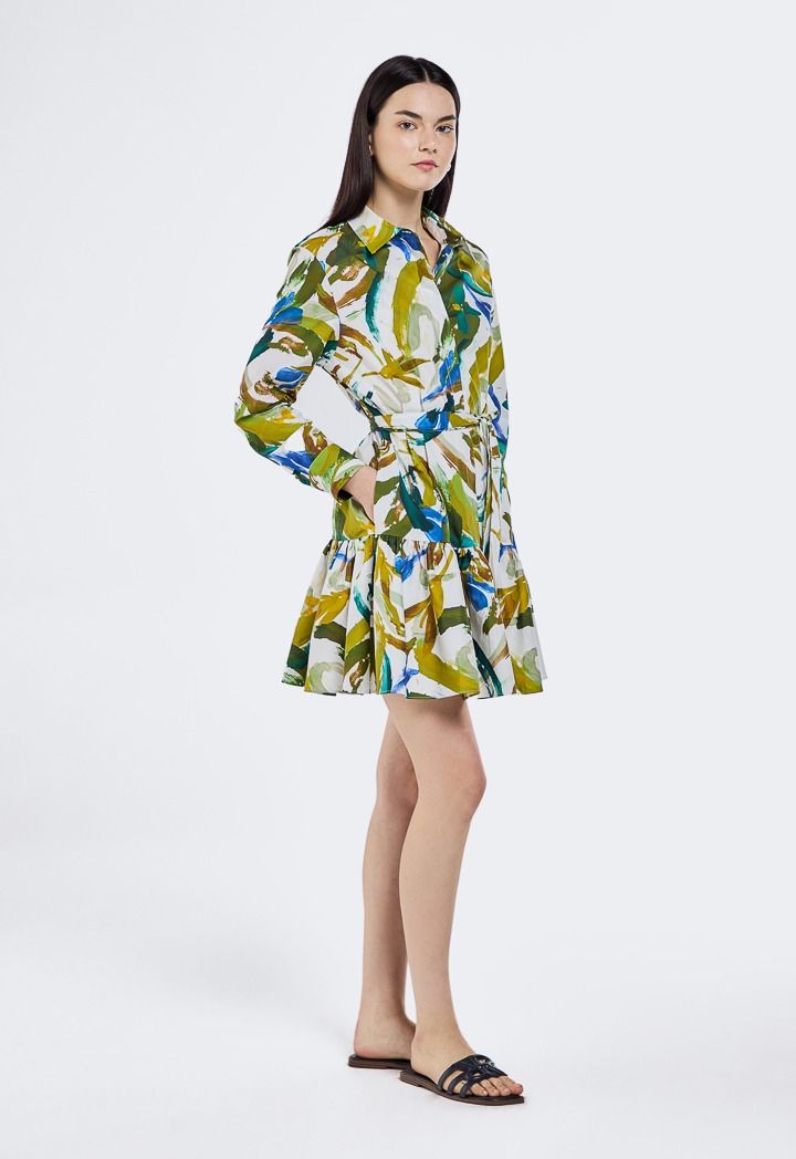 Design: Printed, Side Pockets, Belted, Ruffle Hem