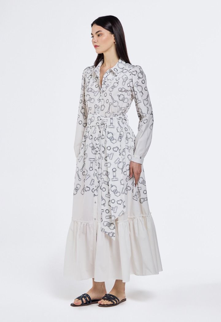 Design: Printed, Ruffled Hem, Belted, Side Pockets