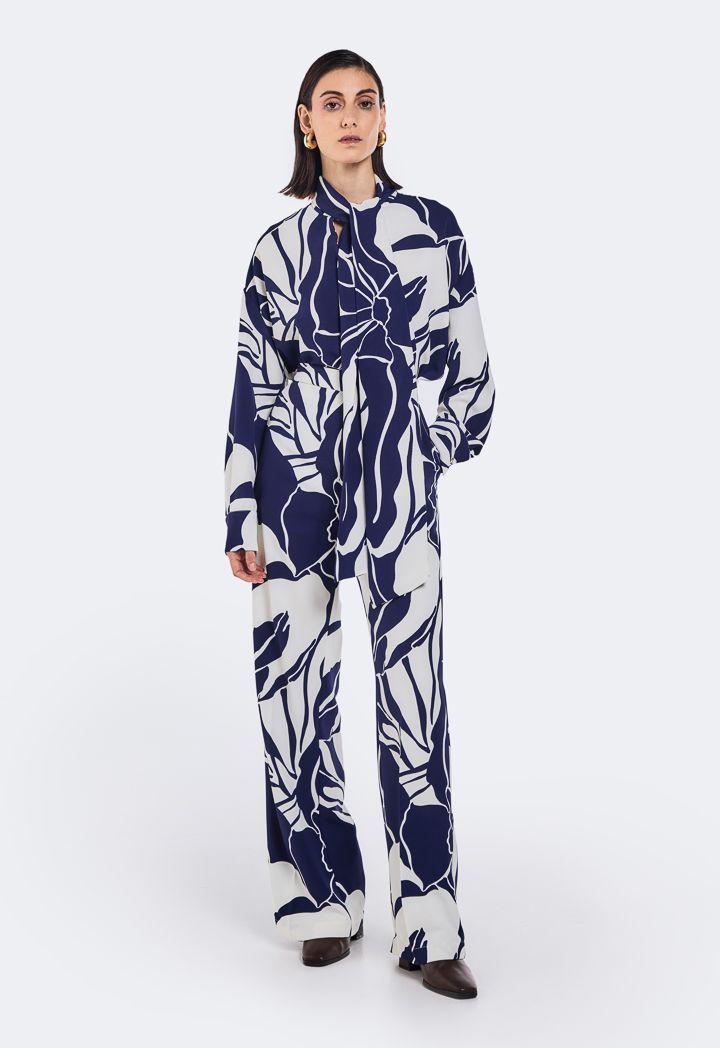 Statement trousers for your wardrobe. Designed in a sophisticated print, our trousers fall to a modern wide leg silhouette.