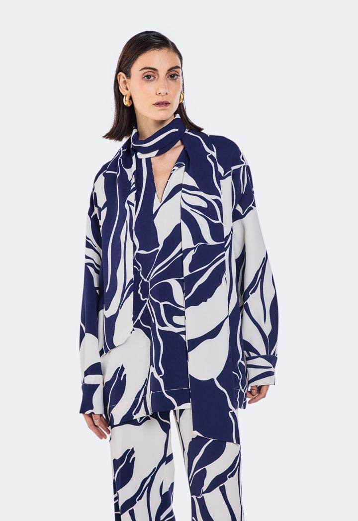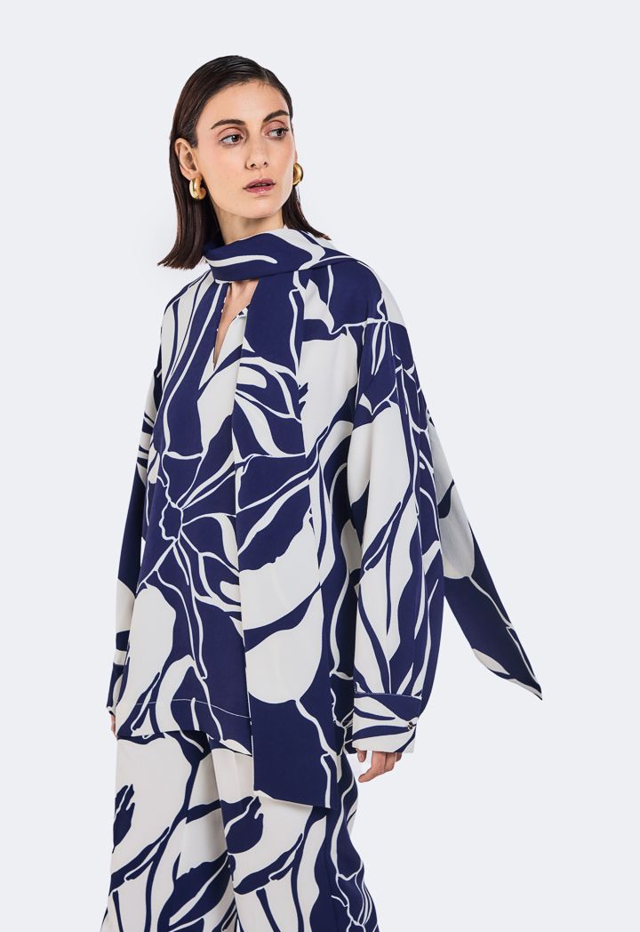 Printed Tie Neck Blouse |
