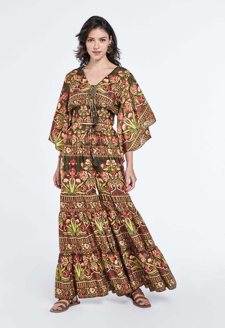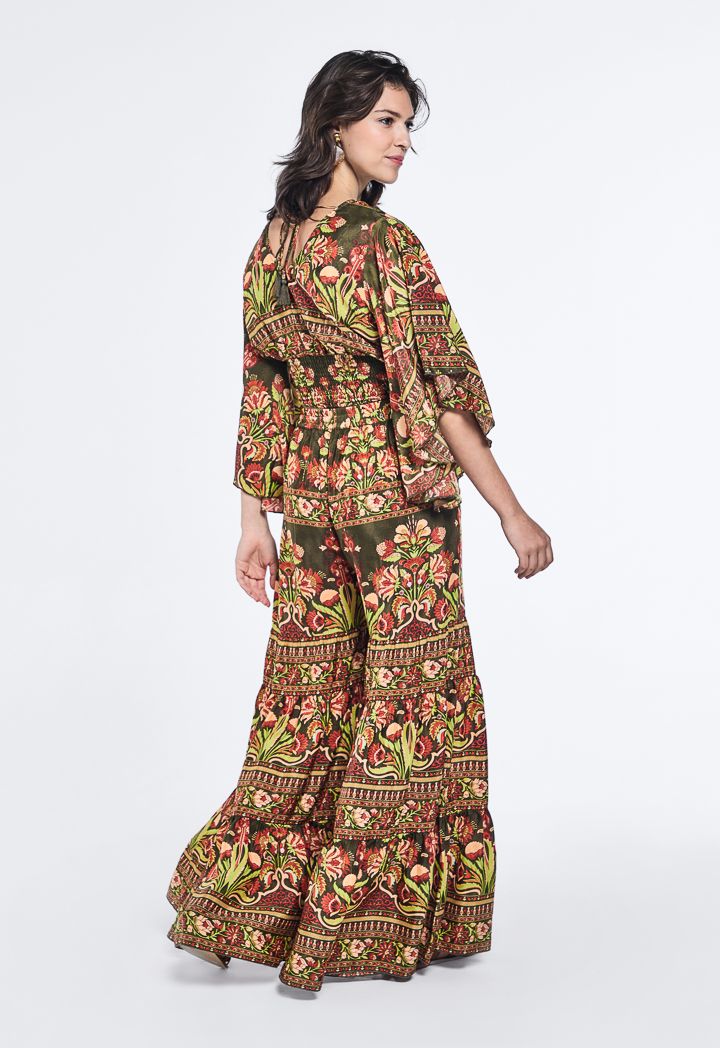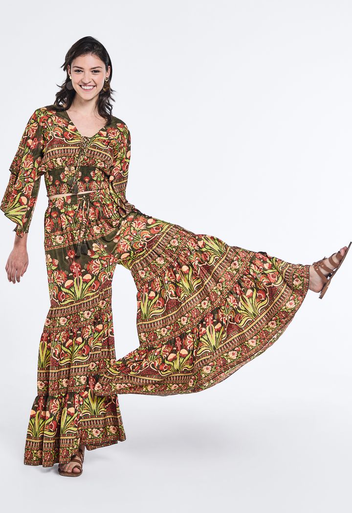 These Pants are the top of our new season. Featuring a tiered design and a flared fit. Style with a crop top, and a clutch for a seriously chic fit.