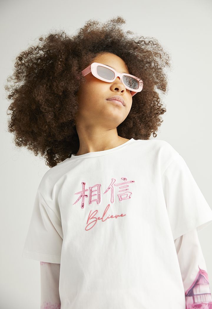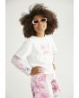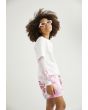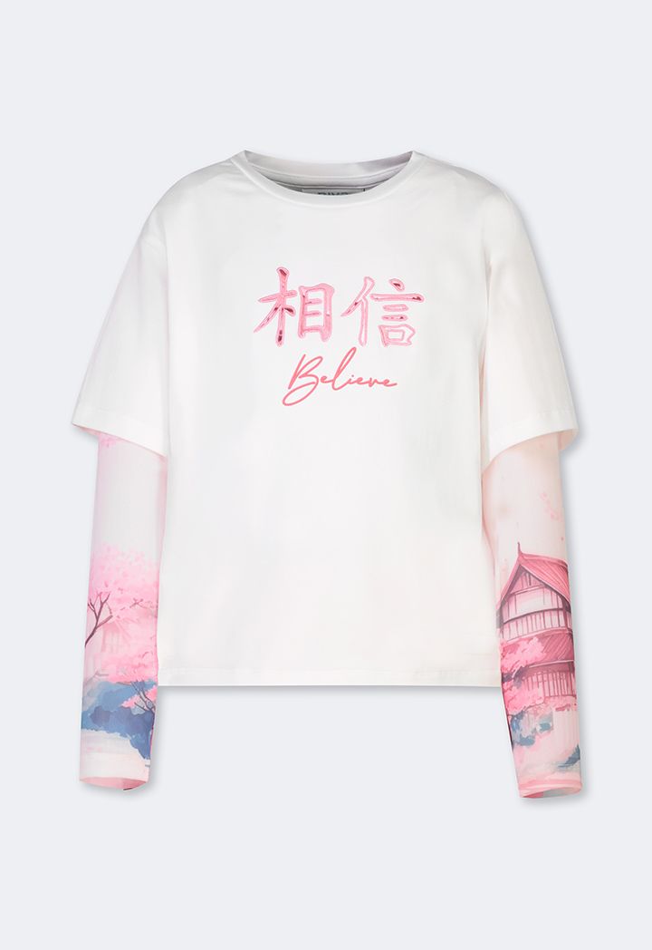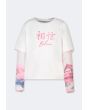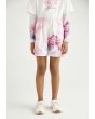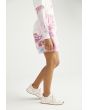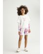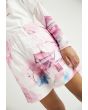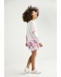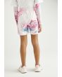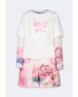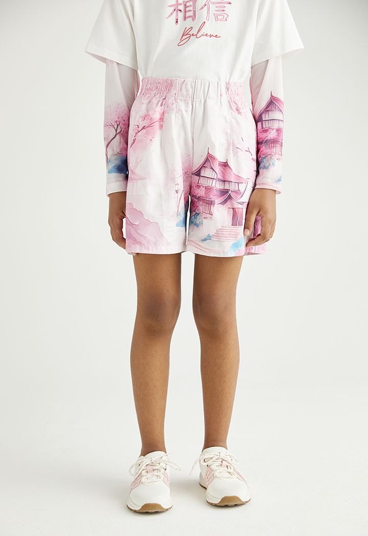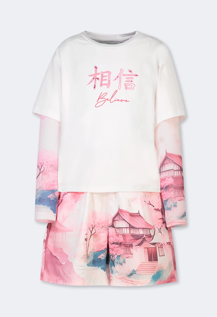 A comfortable set that includes a printed long sleeved t shirt and a matching pair of shorts.