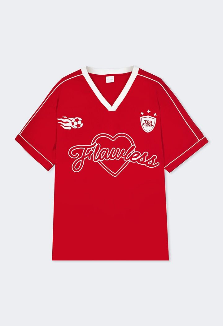 Sporty t-shirt with a unique print and a stylish V-neck design, combining comfort and elegance for a vibrant and attractive look, perfect for any casual or athletic occasion.