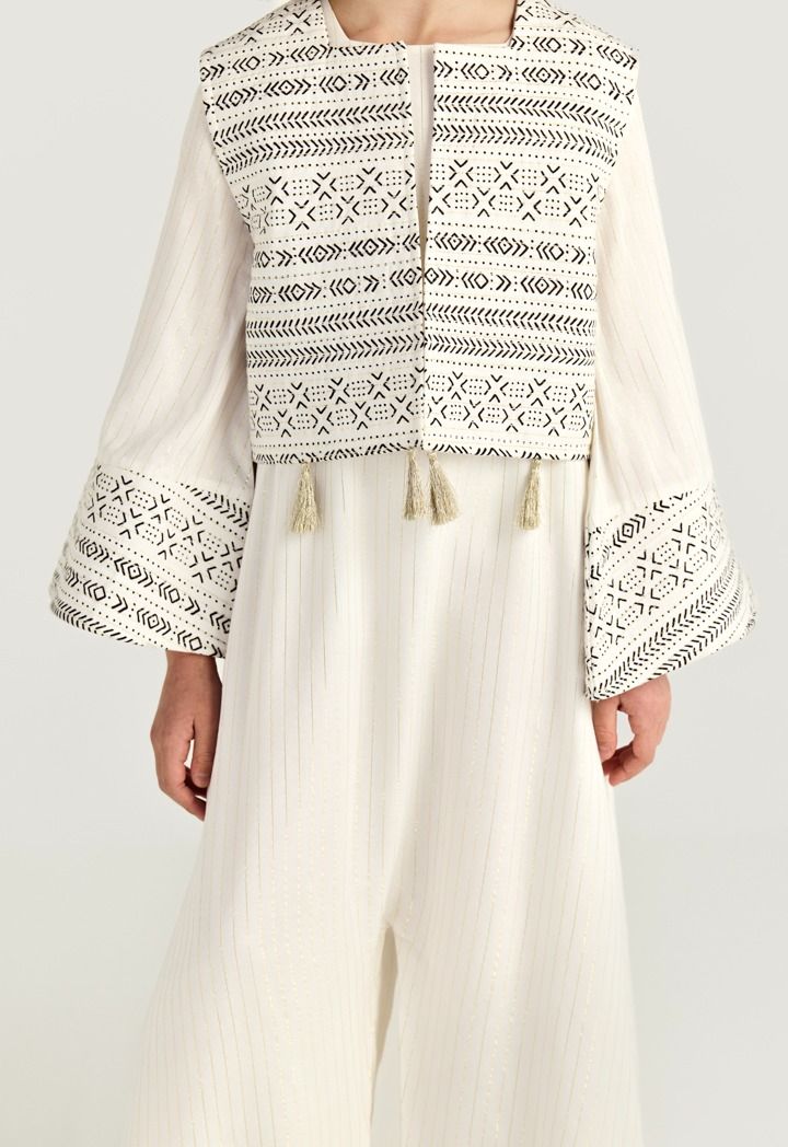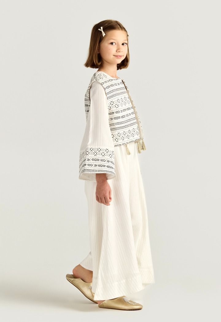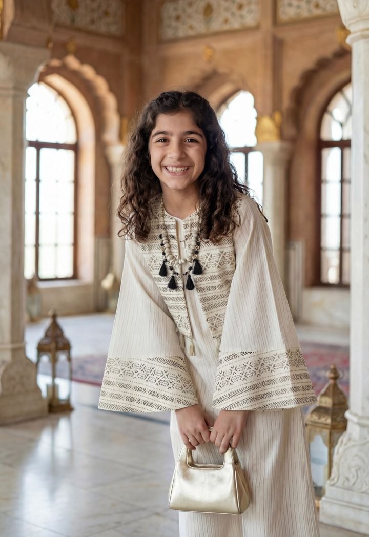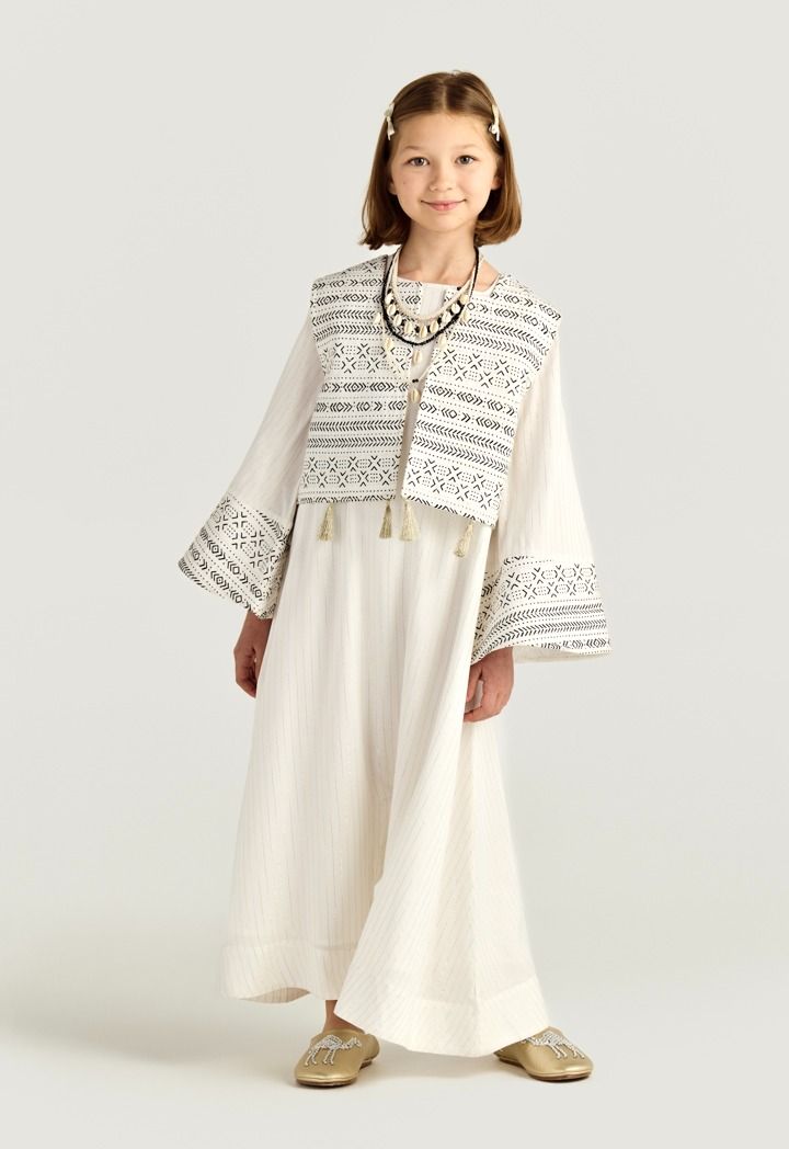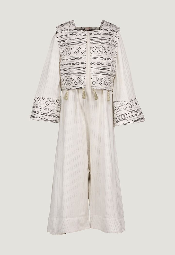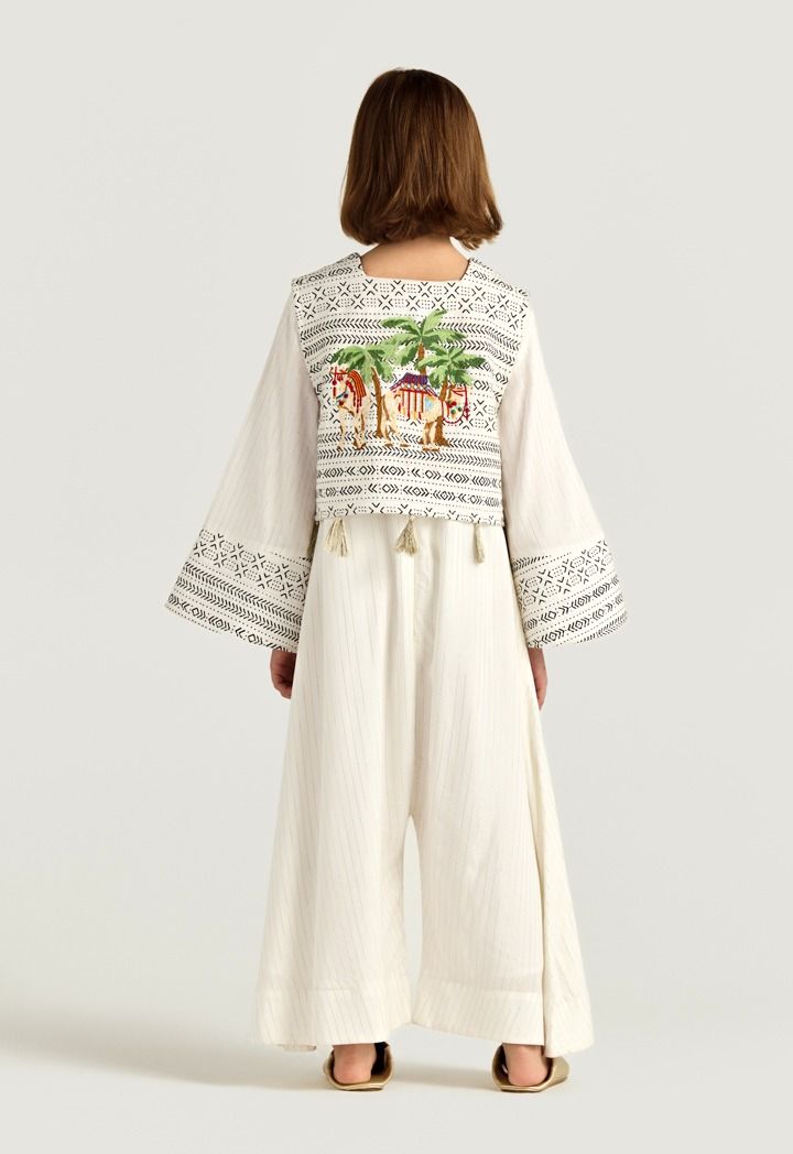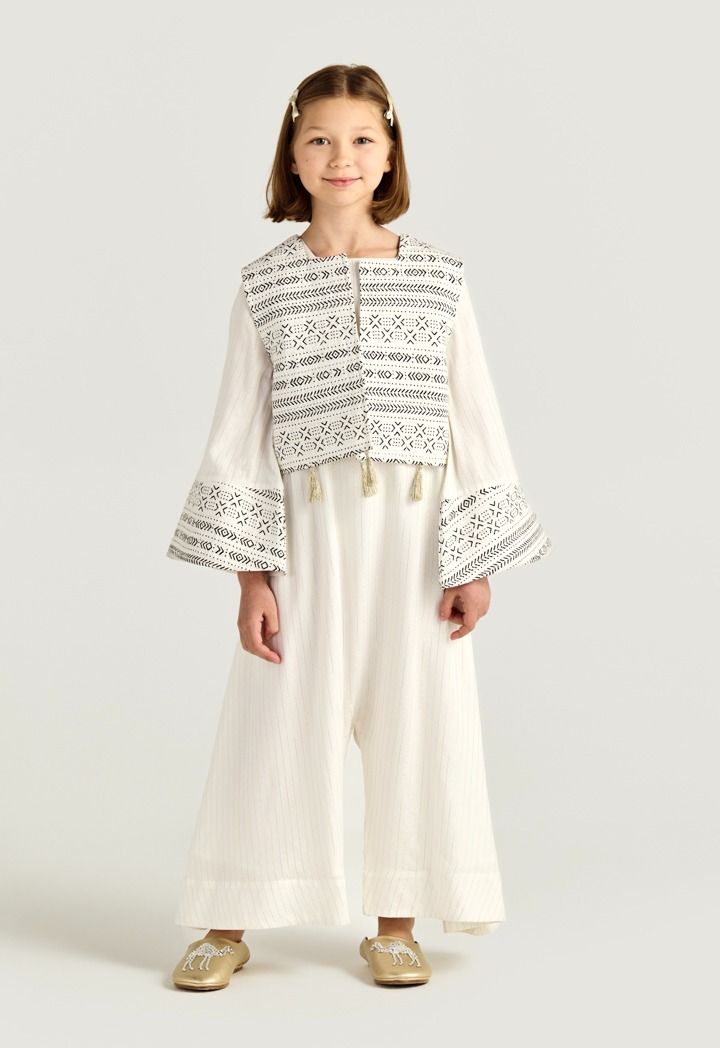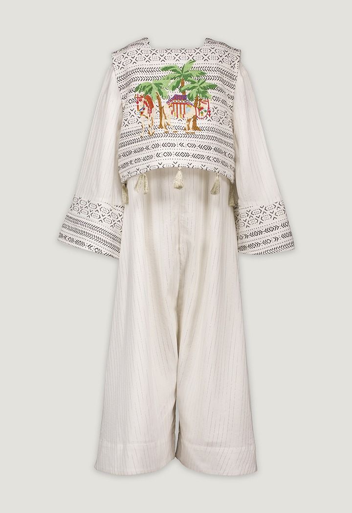 Soft stripes and playful Camal embroidery give this Jumpsuit a fun, desert-inspired touch for relaxed Ramadan gatherings.