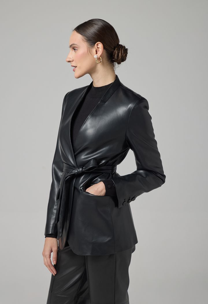 Design: Solid, Belted, PU Leather, Flap Pockets