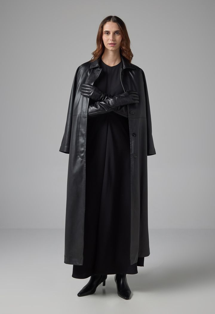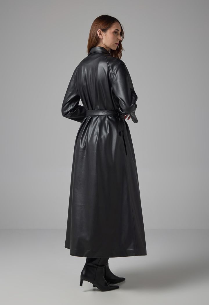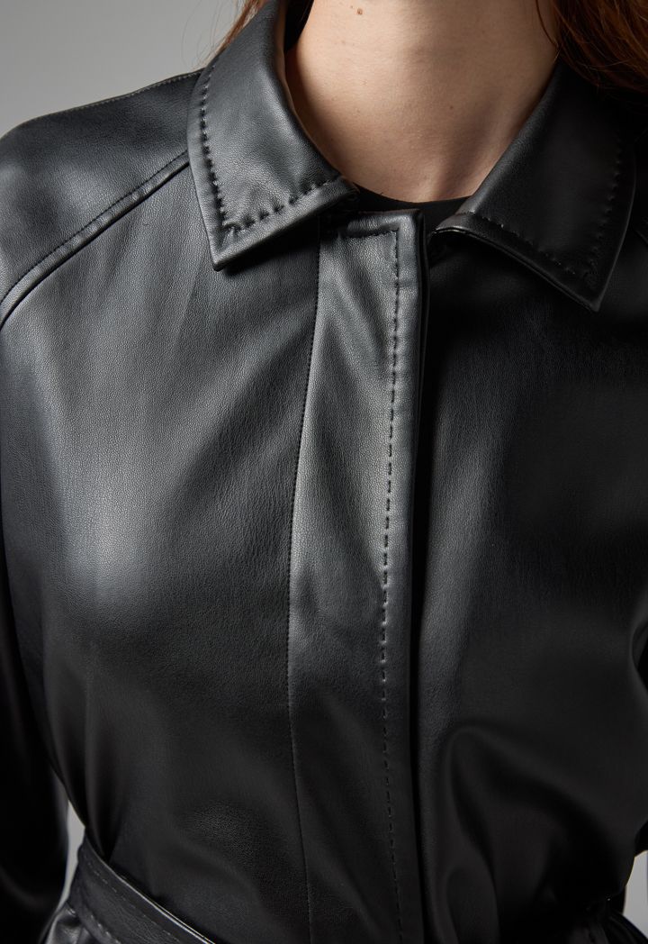 PU Leather Belted Trench Coat |