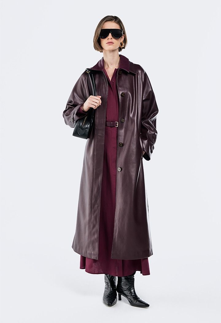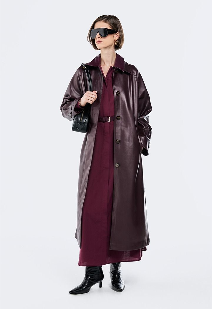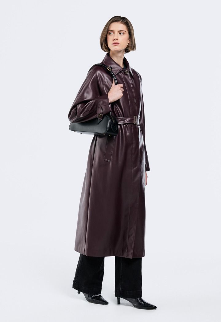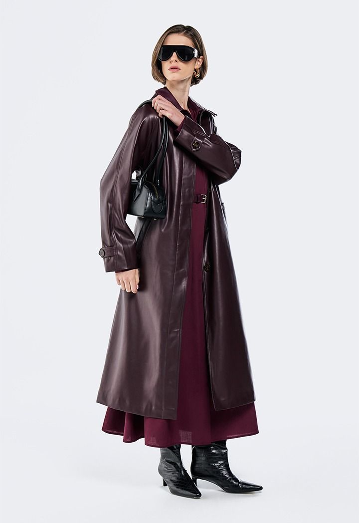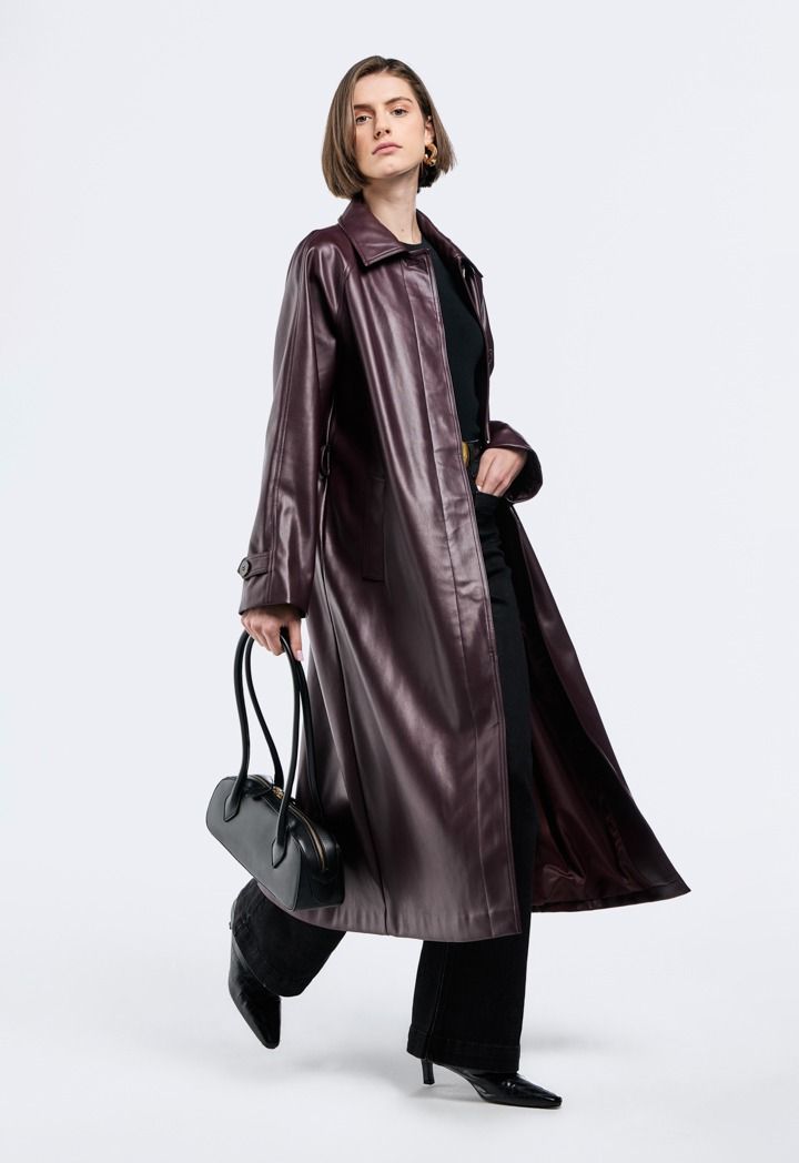Elevate your style with this PU Leather Belted Trench Coat. Timeless, sleek, and bold.