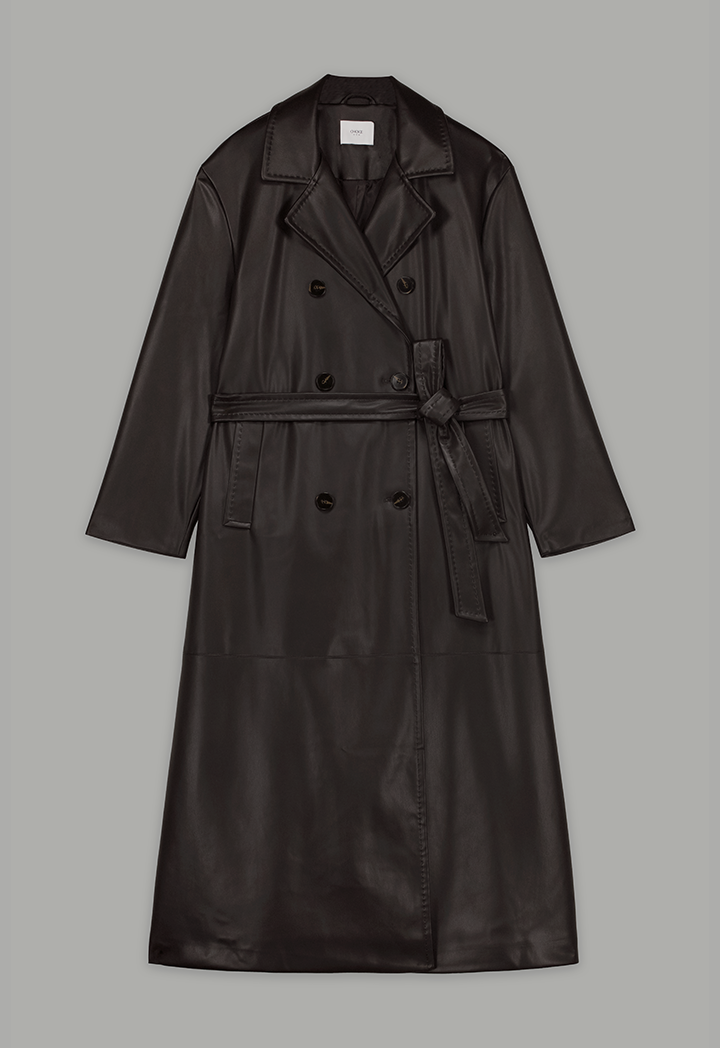 PU Leather Belted Trench Coat |