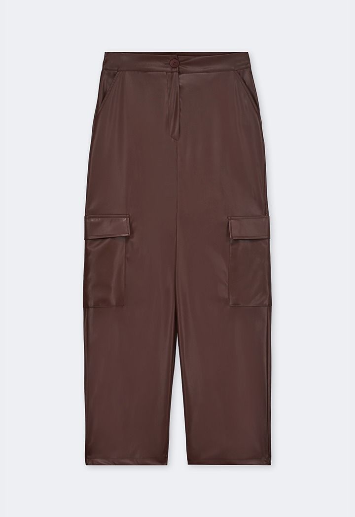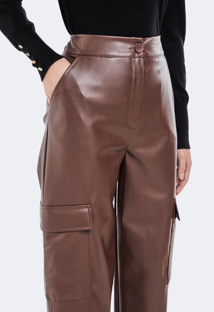 Design: Straight Cut, High Waist, Solid, Multi Pockets, Cargo, PU Leather
