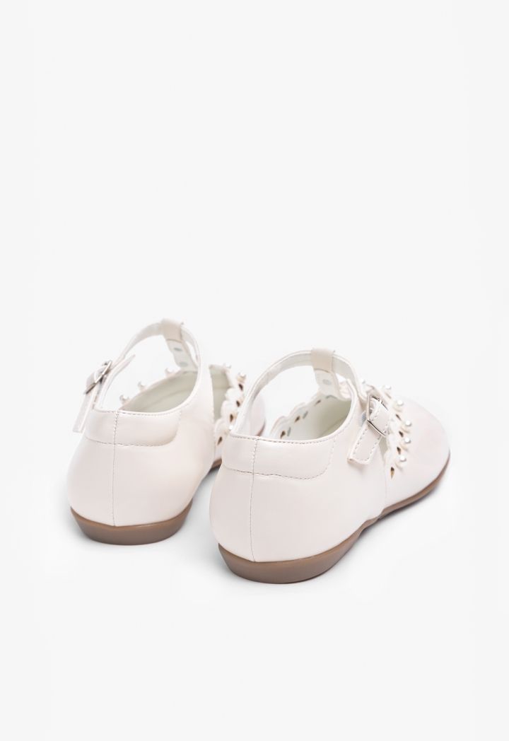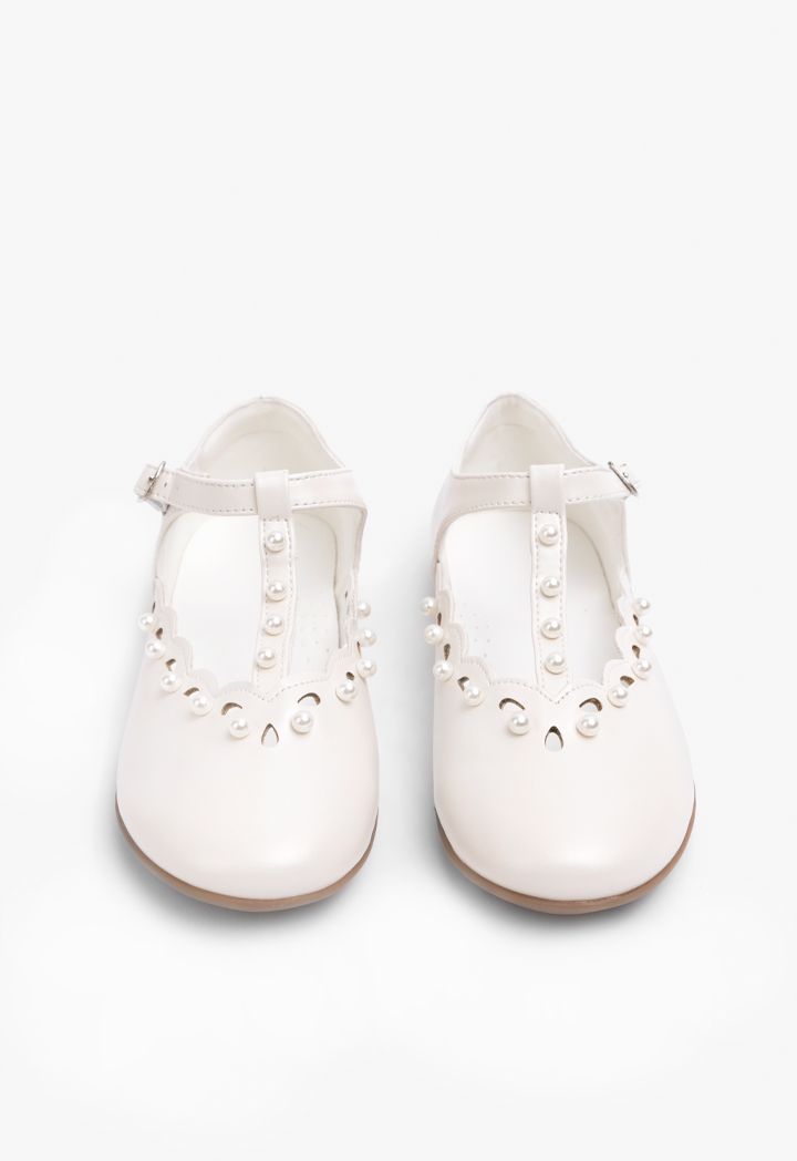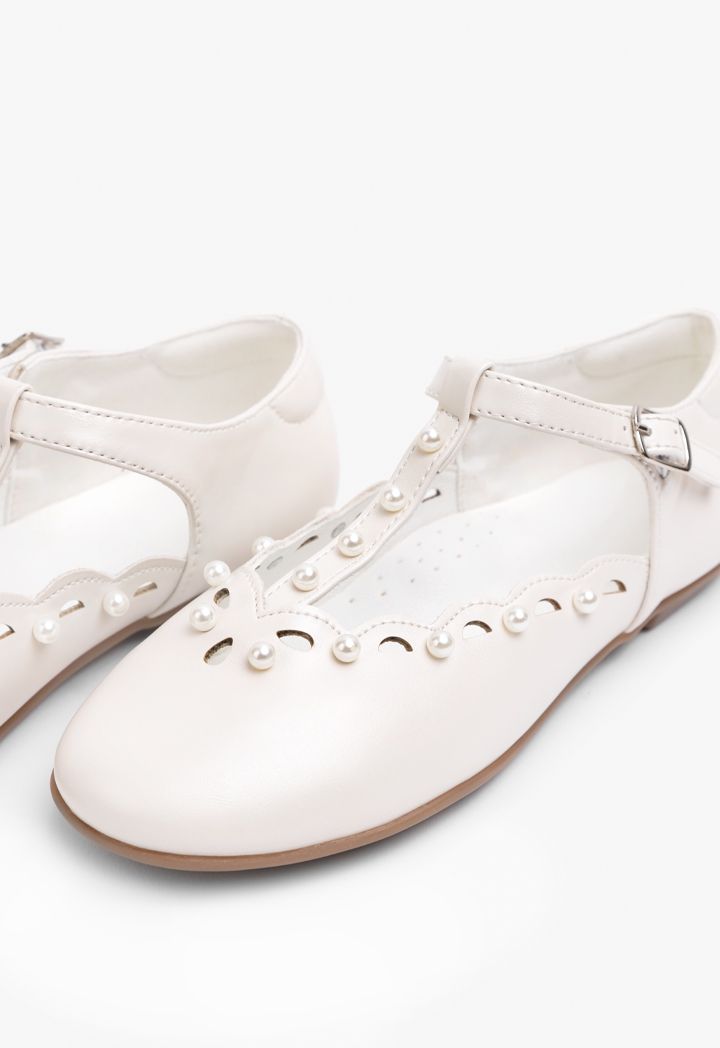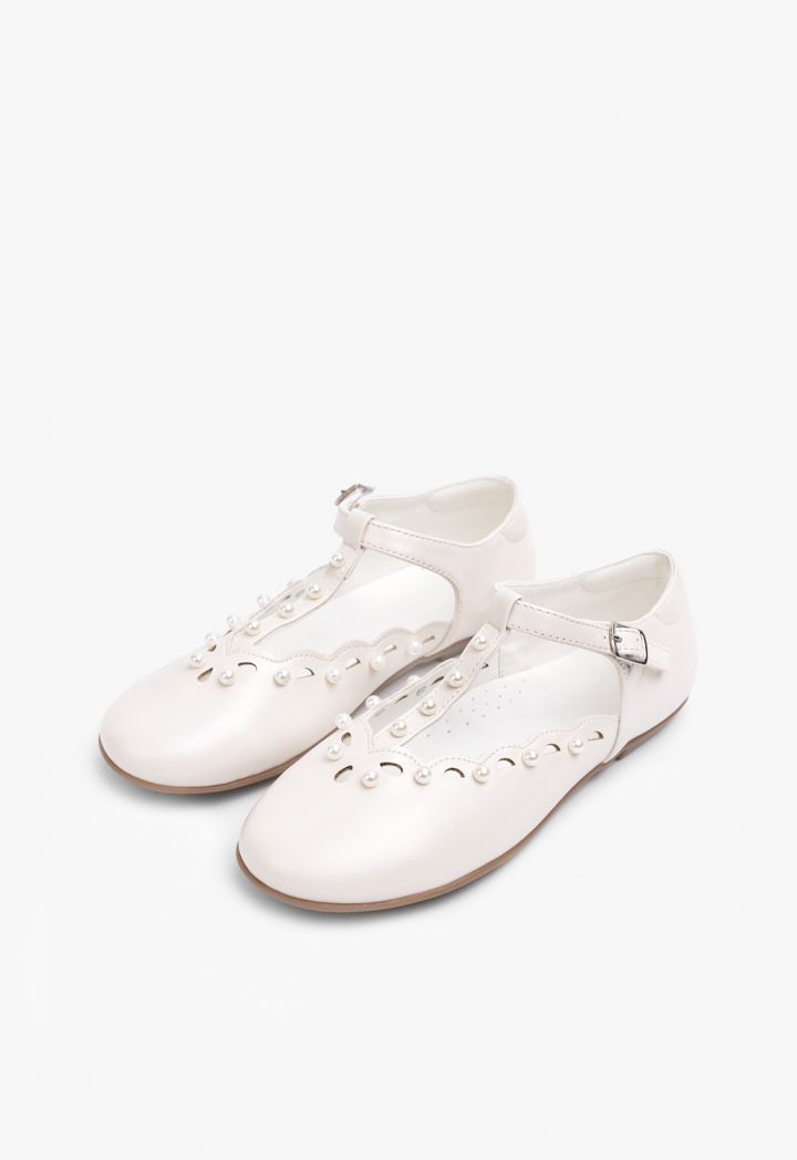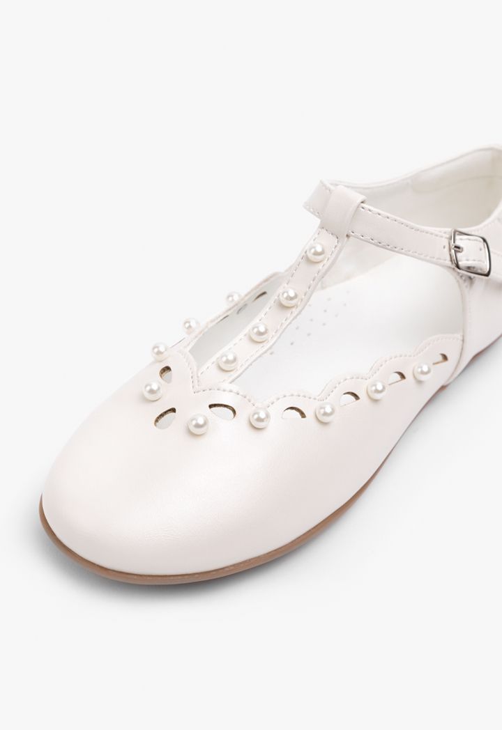 PU Leather Faux Pearls Embellished Ankle Strap Flats |