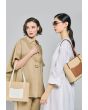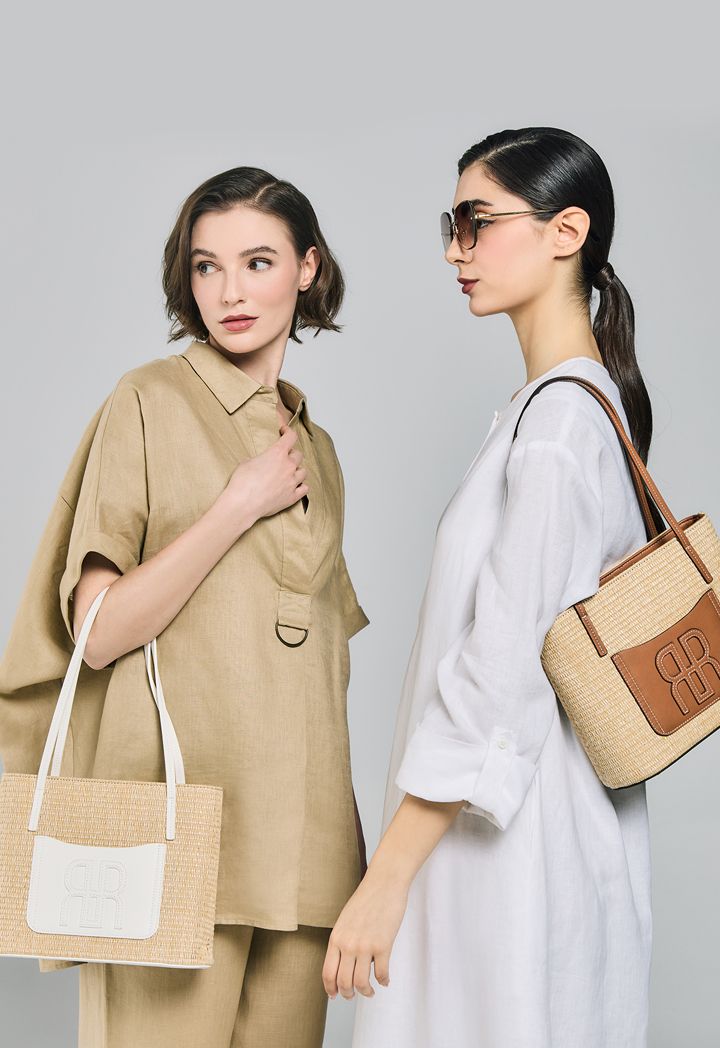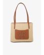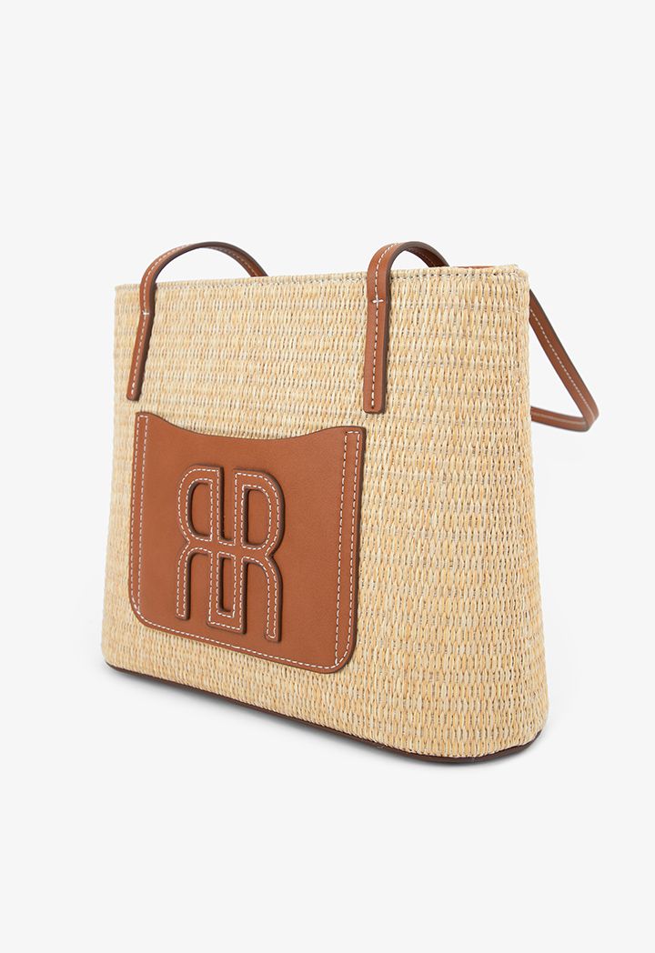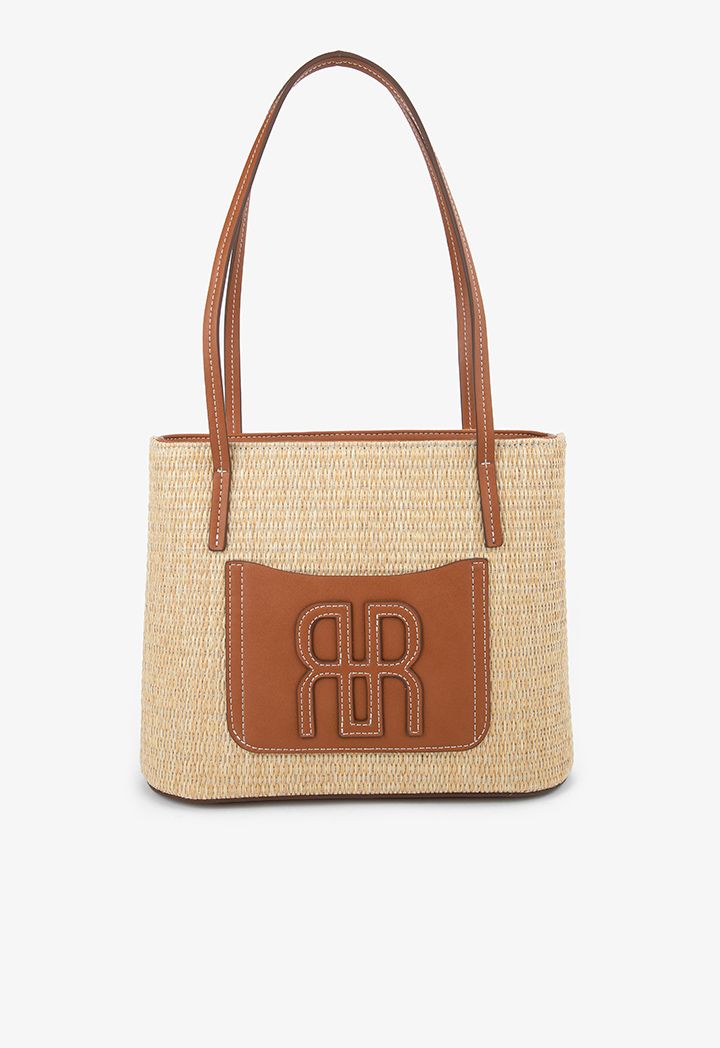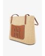 A chic tote bag that features a durable faux straw and PU leather design, in addition to dual shoulder straps.