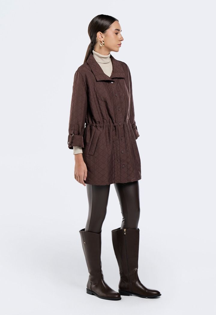 Material: Coating: 100% Polyurethane. Fabric: 90% Polyester, 10% Elastane