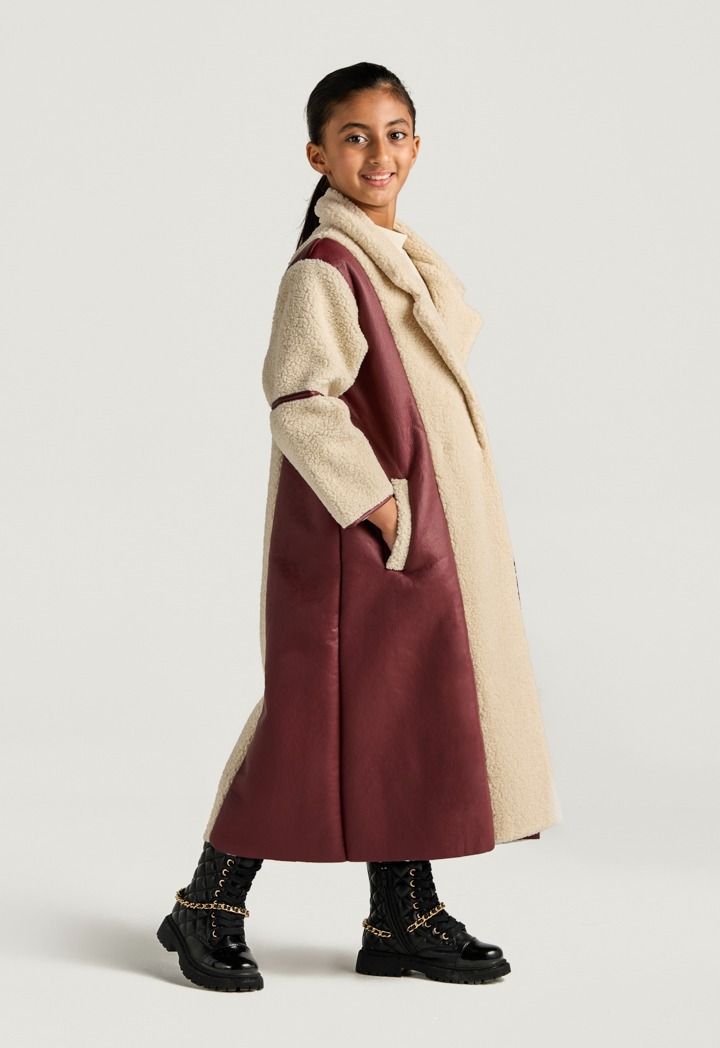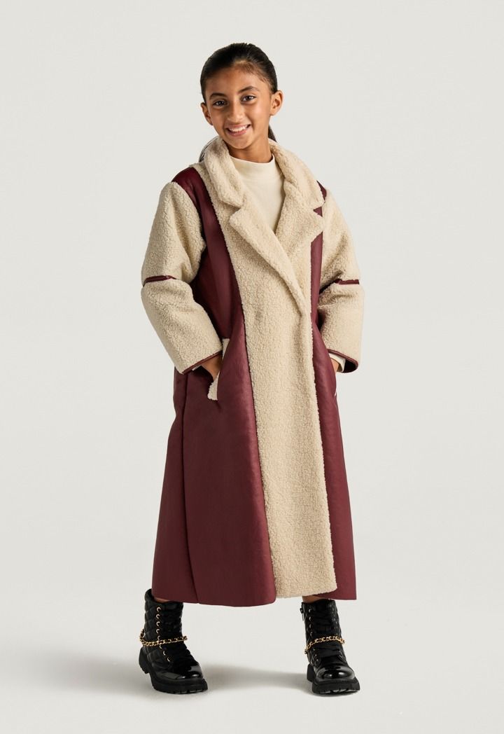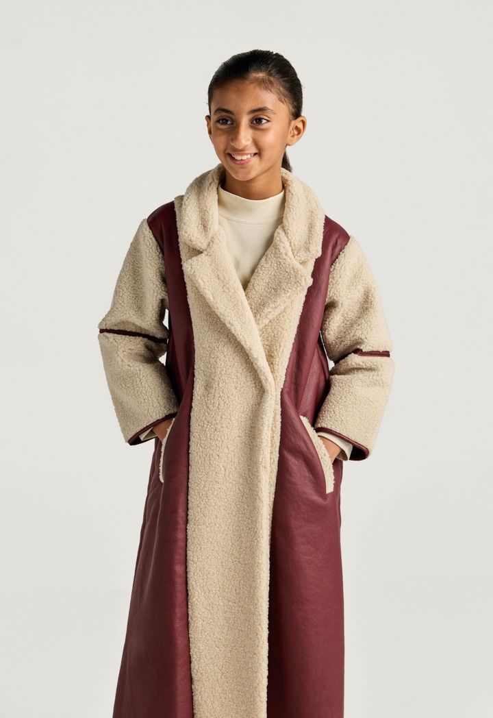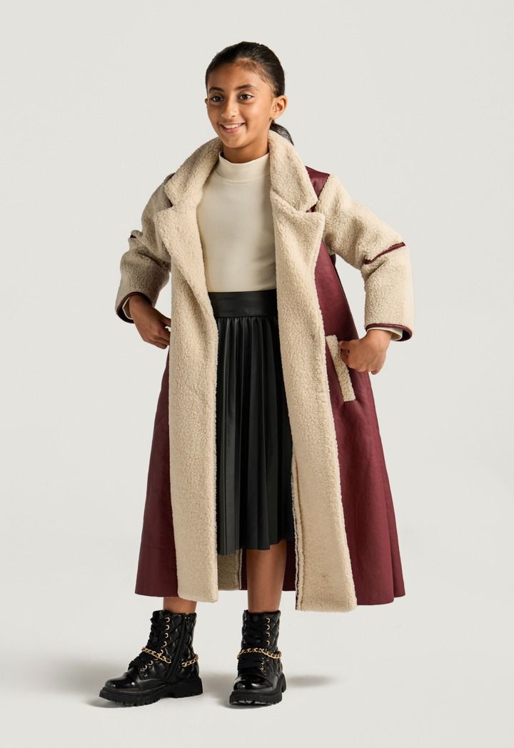 Equip your girl's closet with this abaya. The PU Leather and shearling design makes it chic and warm.