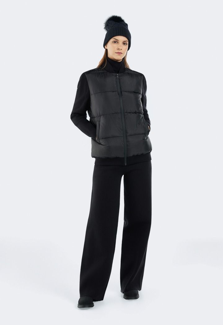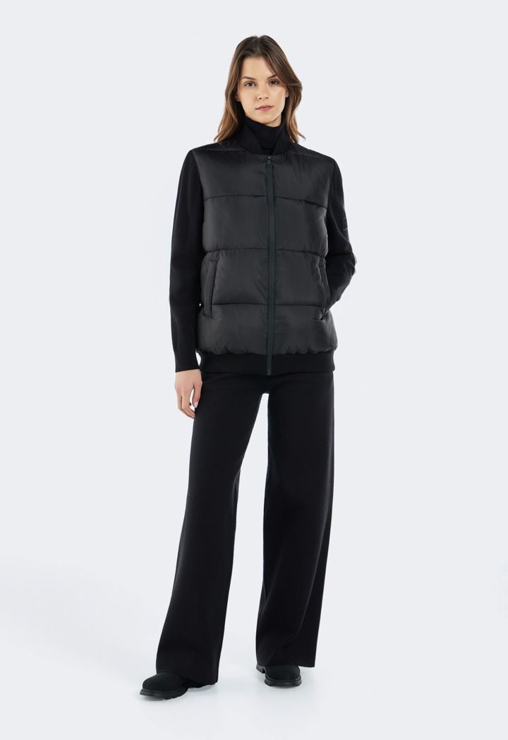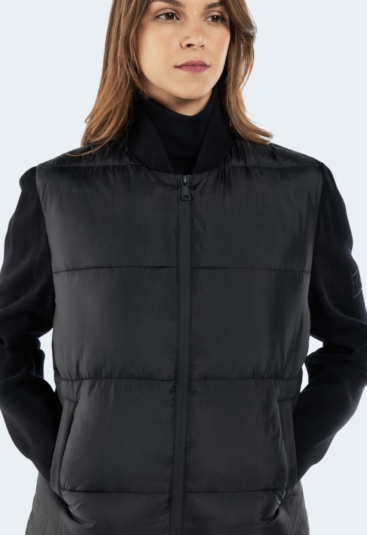Puffer Jacket with Knitted Sleeve |