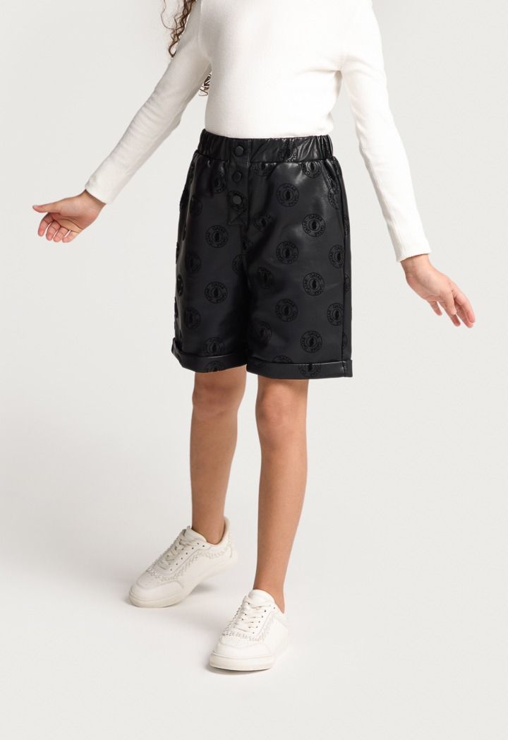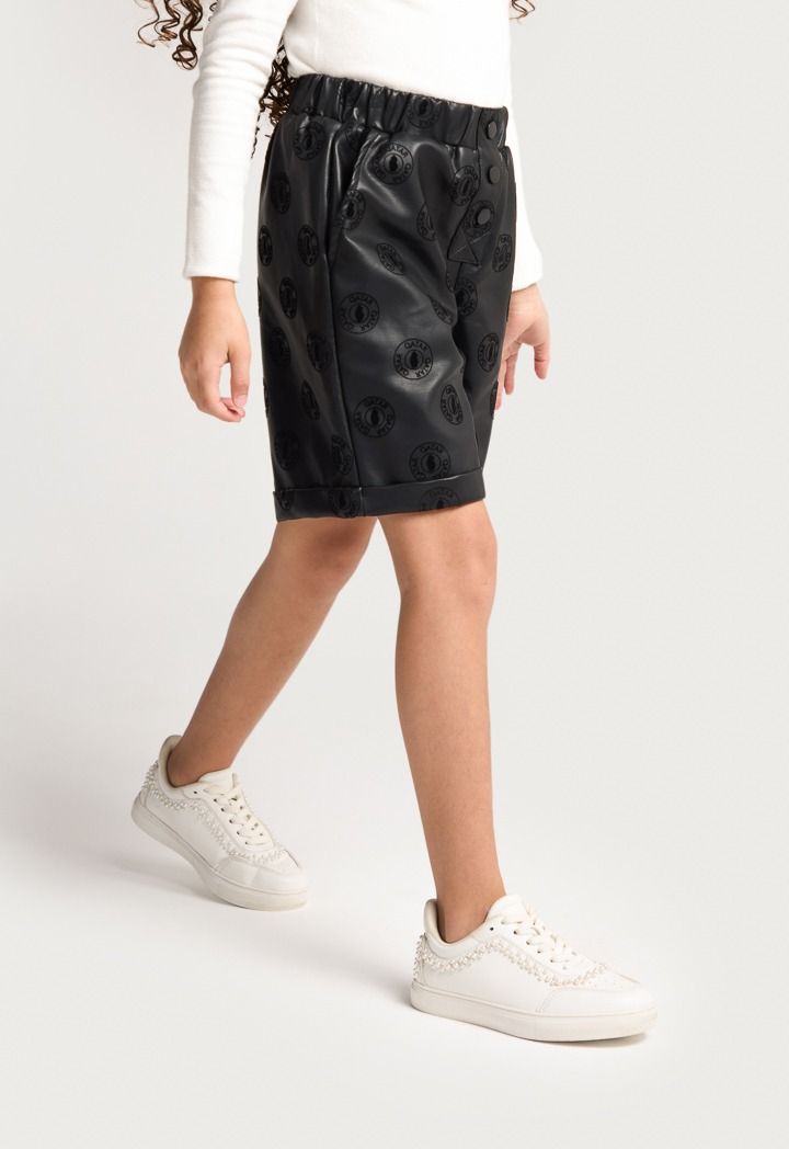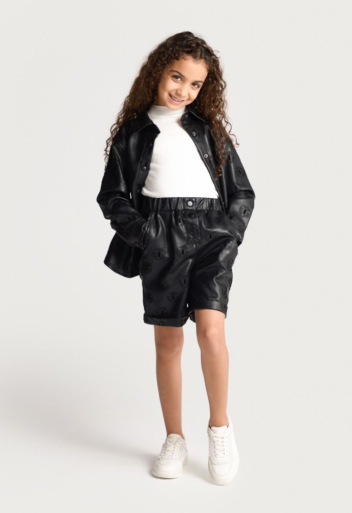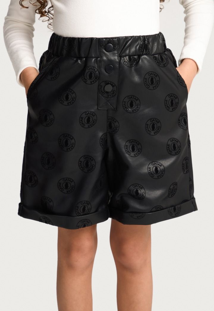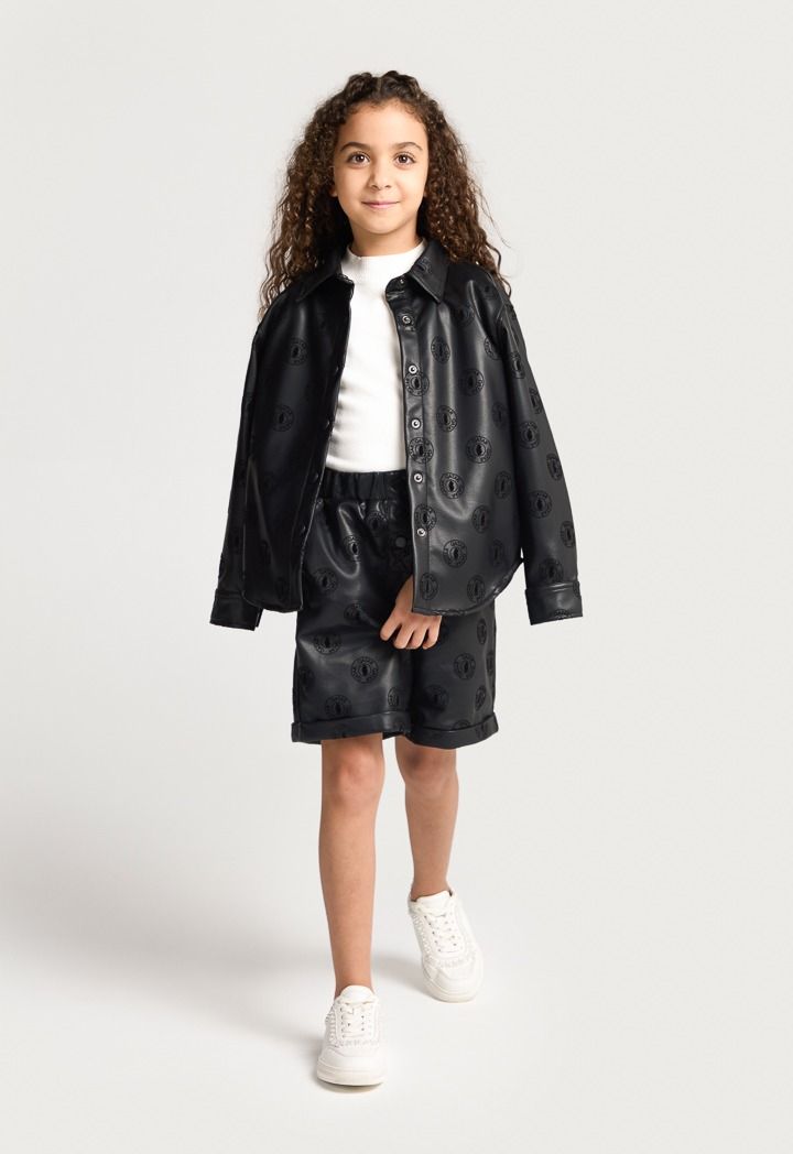 An embossed PU Leather pair of shorts that is best styled with its matching design jacket.