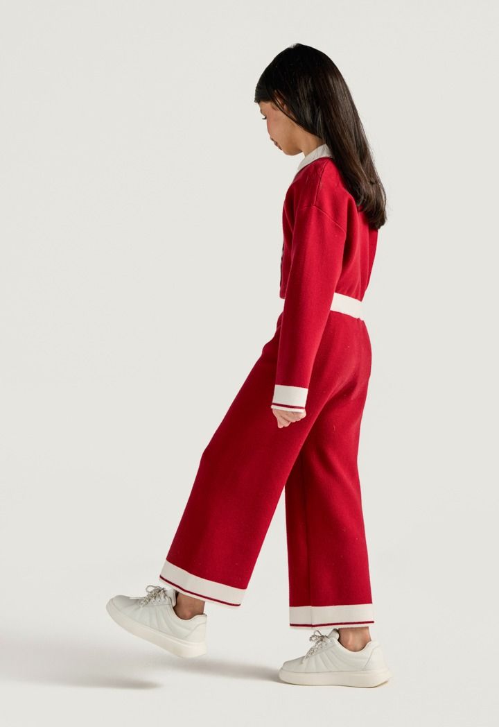 Style this knitted contrast pants with its matching sweater.