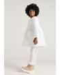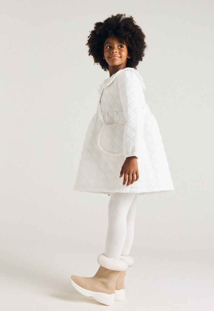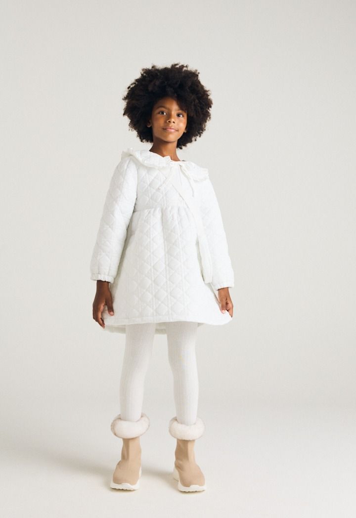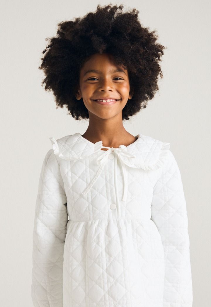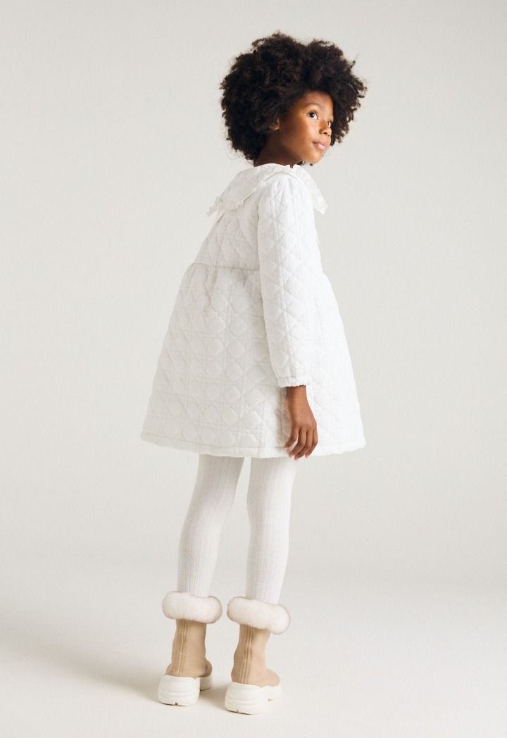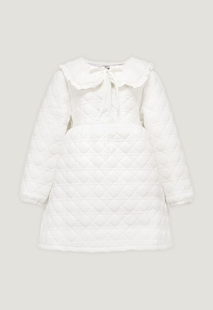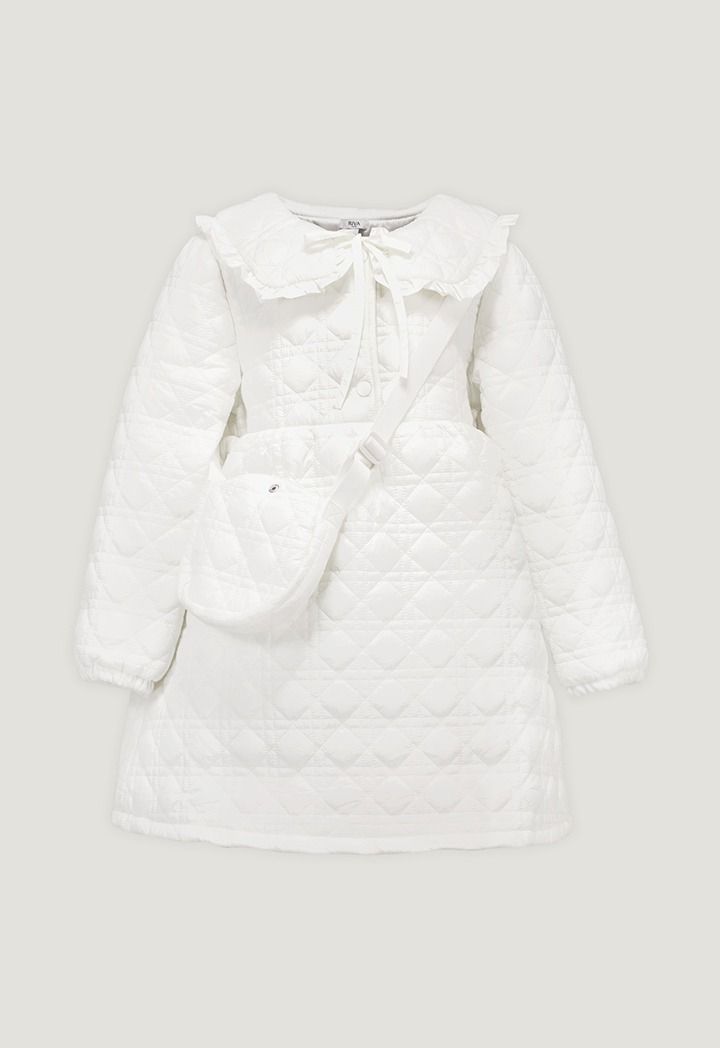 A fashionable quilted dress featuring a crossbody bag with a matching design.