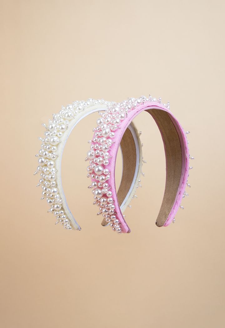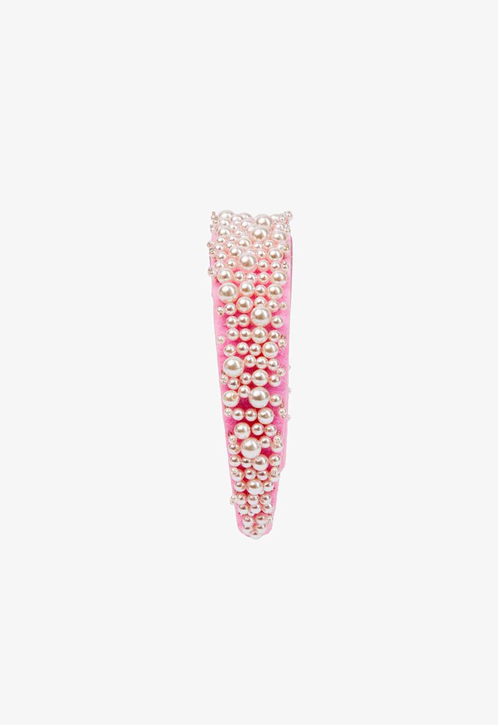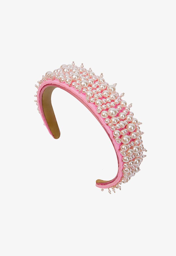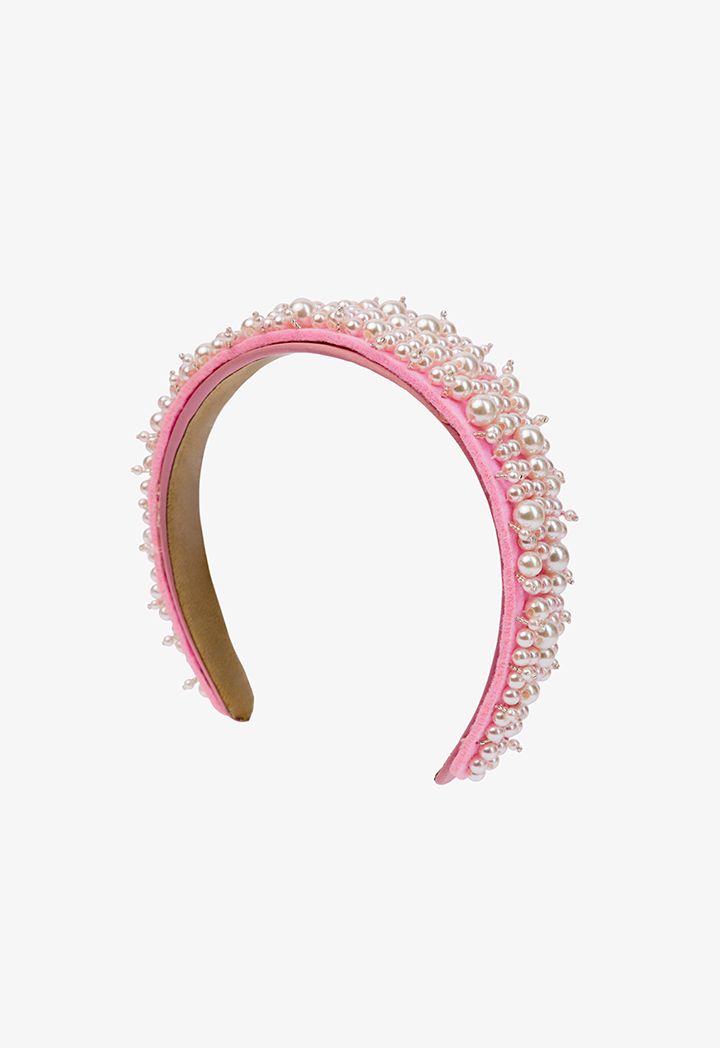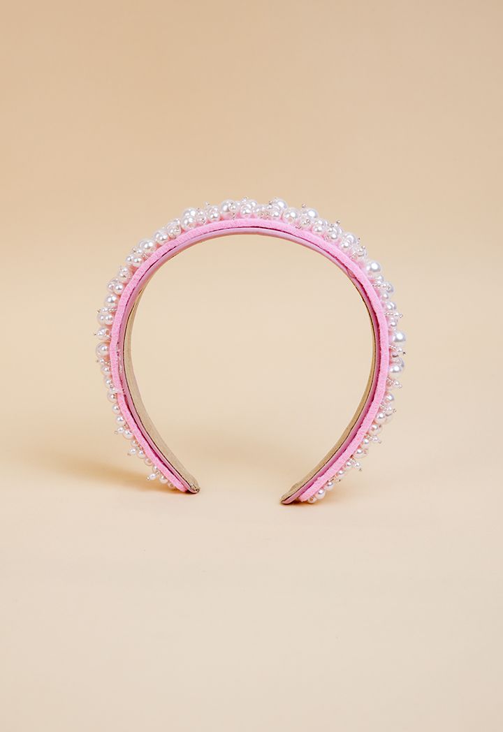 Quilted Faux Pearl Embellished Headband |