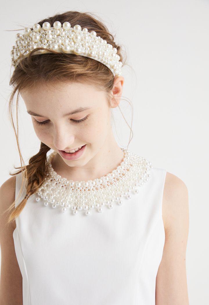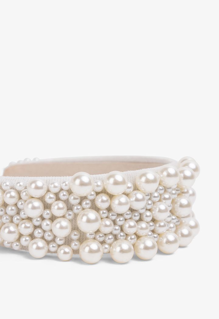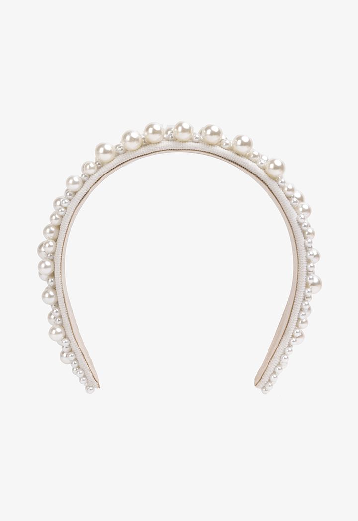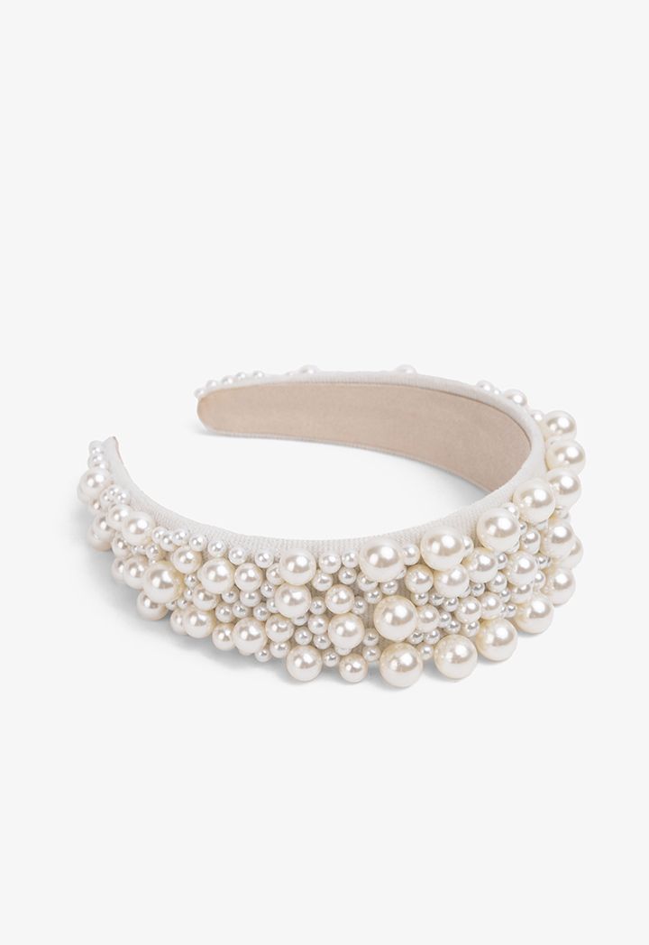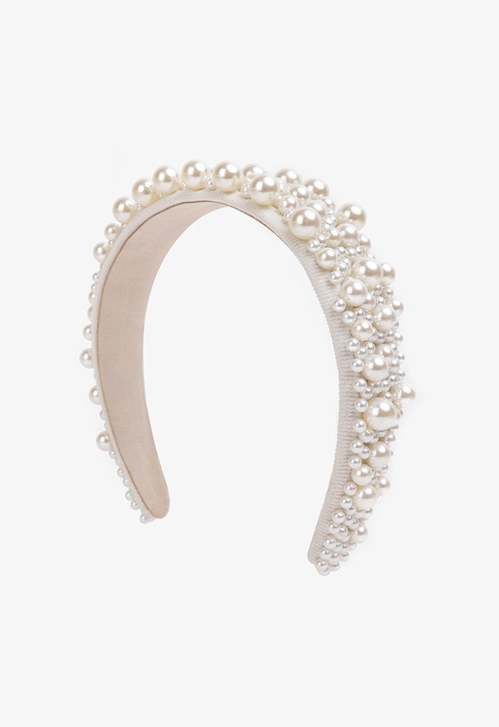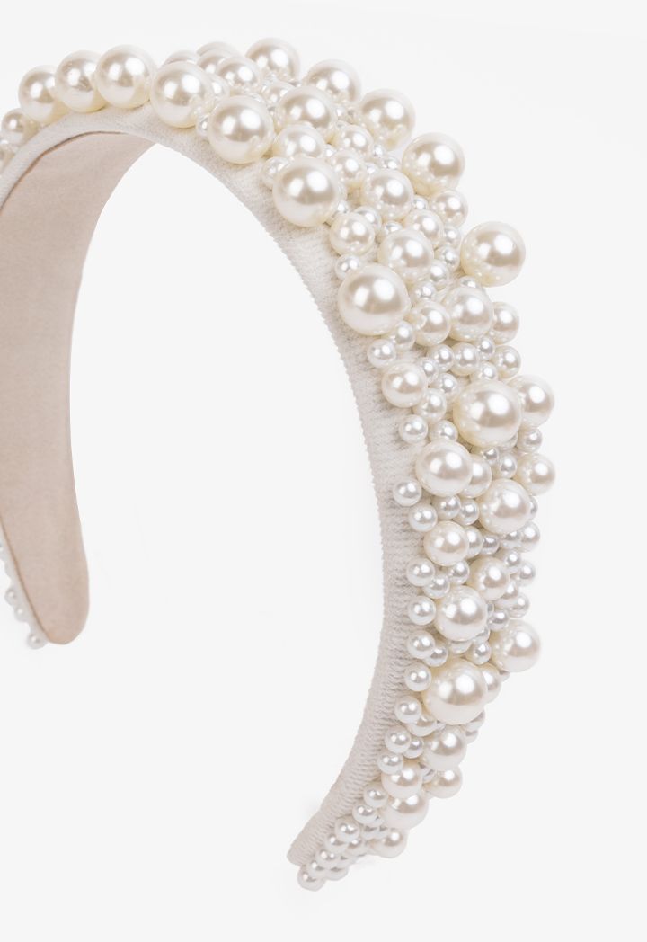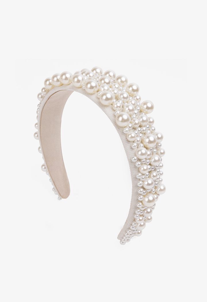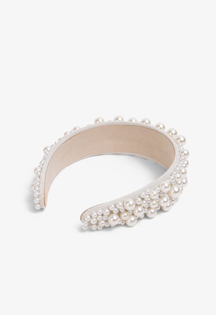 Quilted Faux Pearl Embellished Headband |