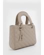 Quilted Leather Top Carry Handle Hand Bag With Medal |