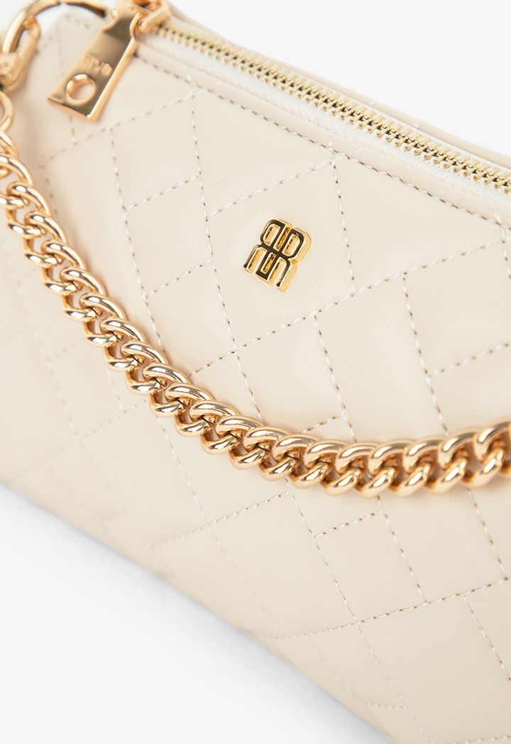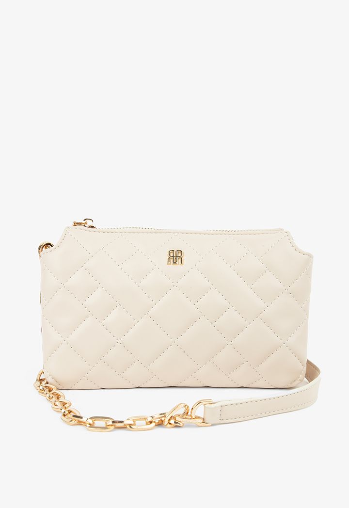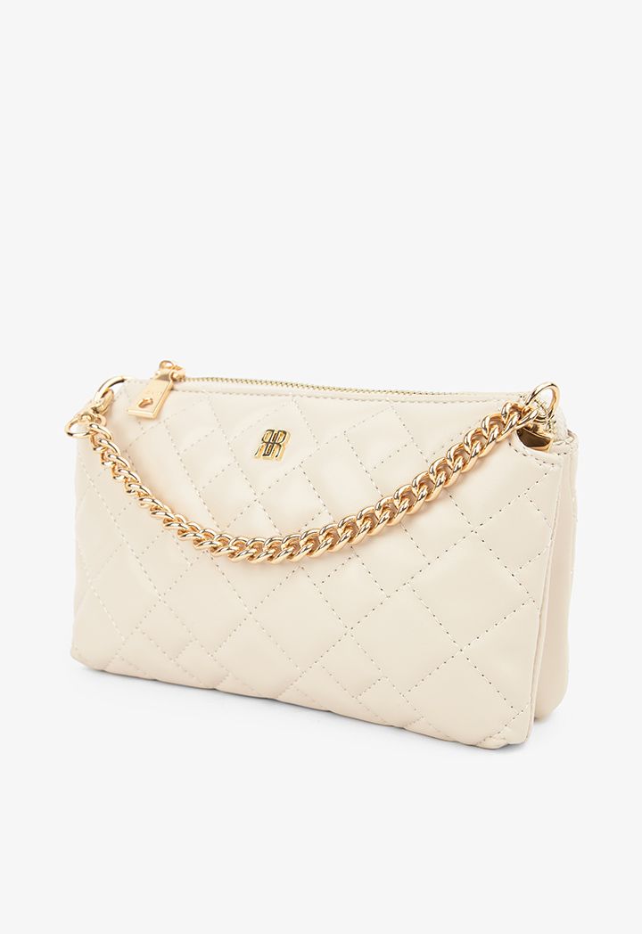 Quilted Metallic Emblem Crossbody Bag