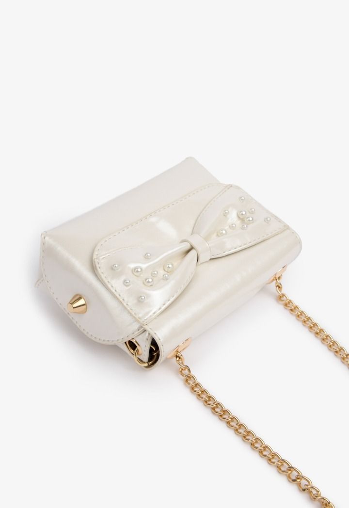 Quilted Pearls Bowed Crossbody Bag