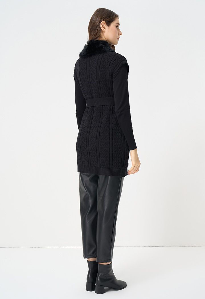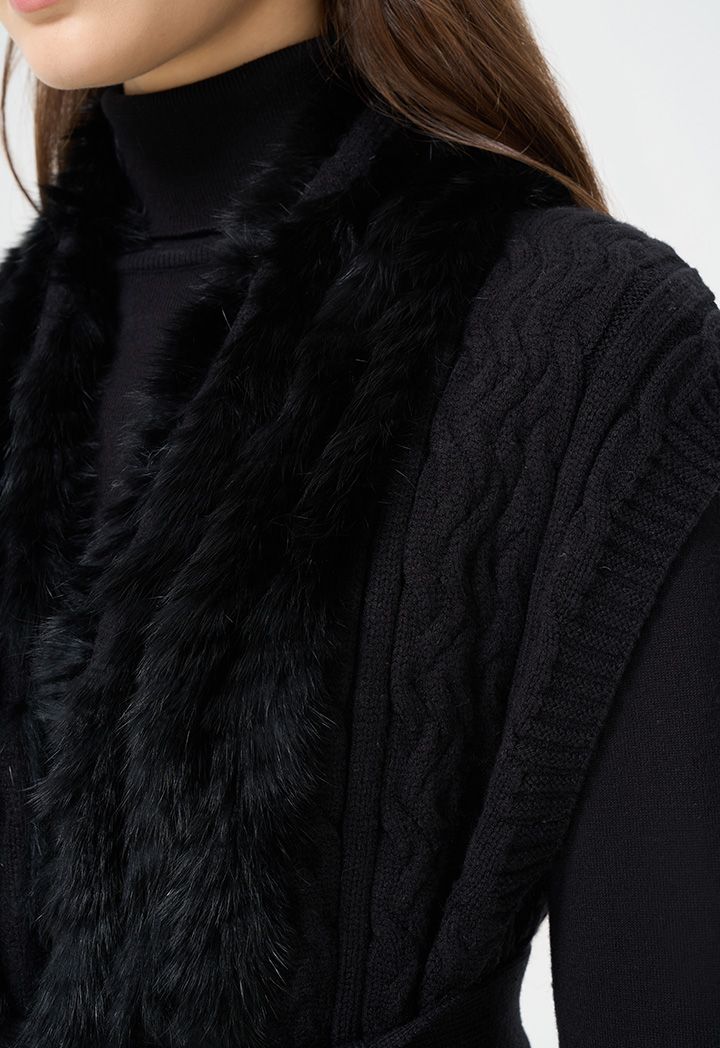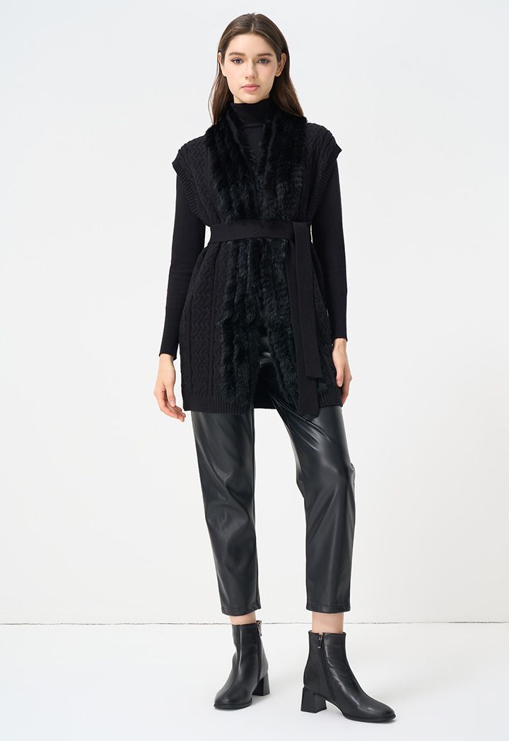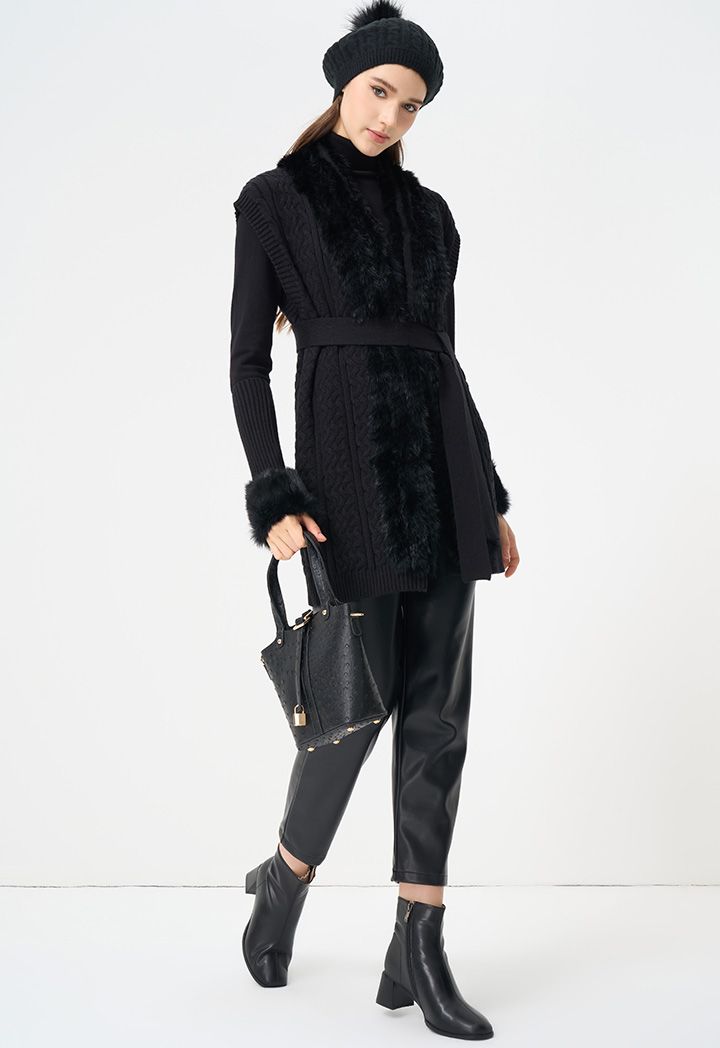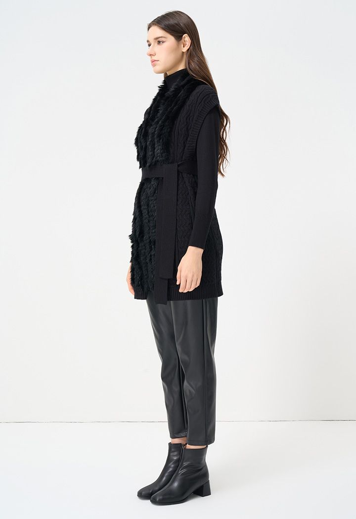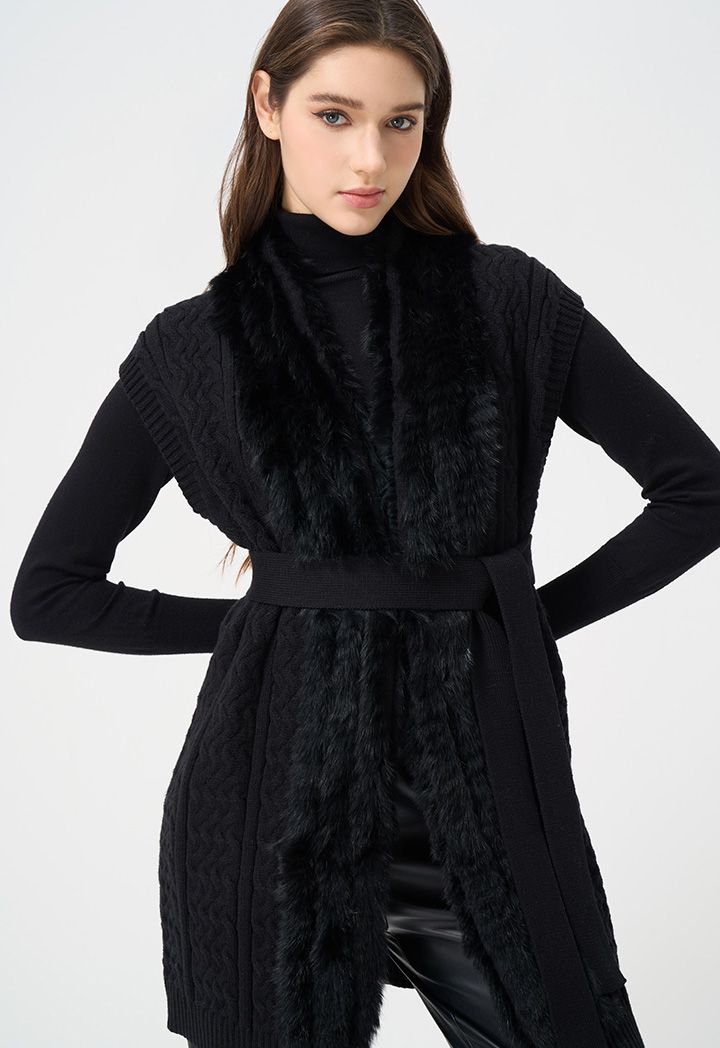 A unique piece that features a rabbit hair embellished design, neck and a belt to accentuate your waist.