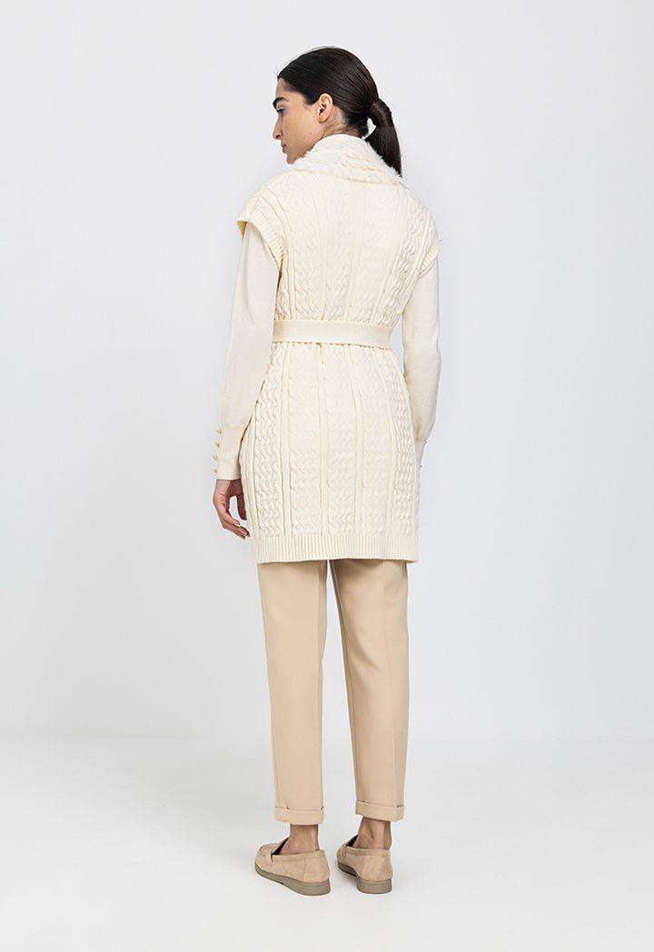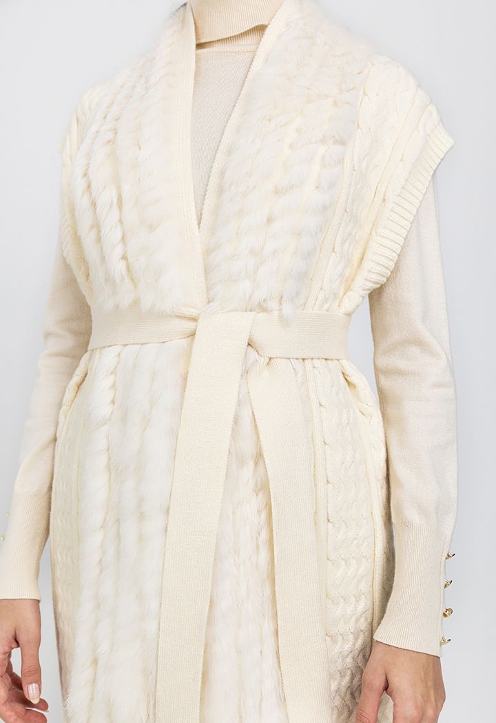 A unique piece that features a faux fur embellished design, neck and a belt to accentuate your waist.