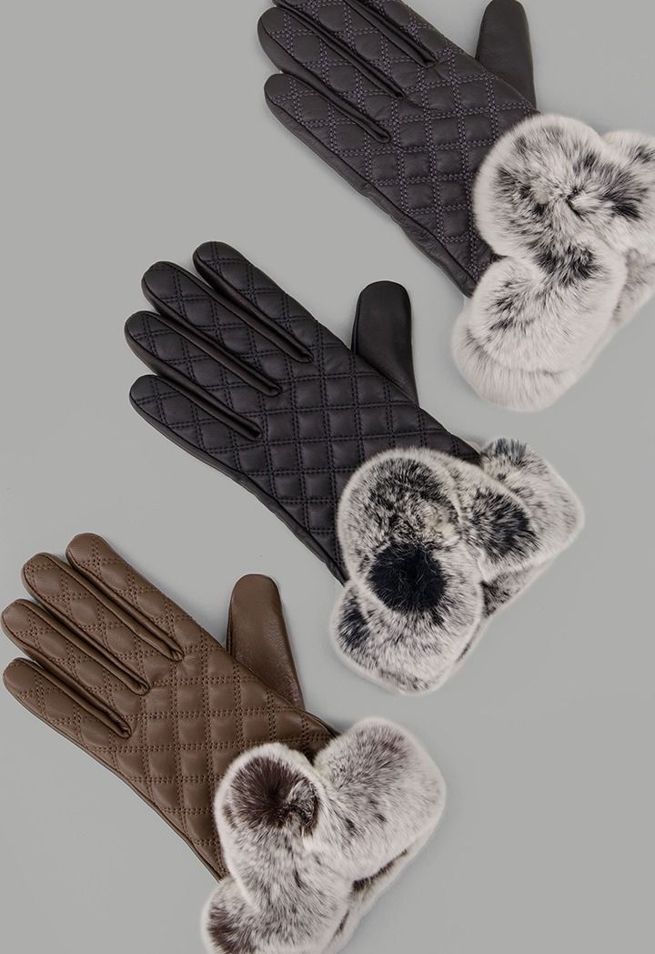 A pair of gloves that features an extravagant design thanks to its Sheep Leather and Rabbit Hair design.