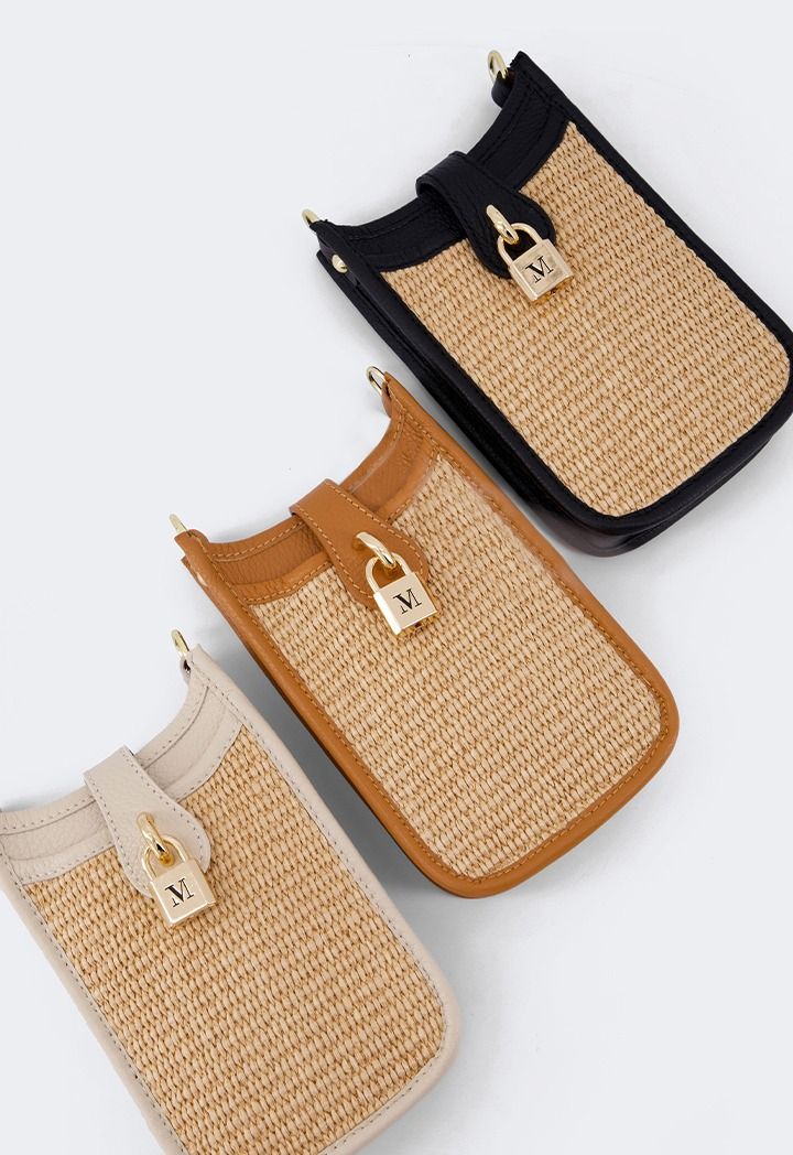 Design : Genuine Leather, Raffia, Inner Pockets, Shoulder Strap