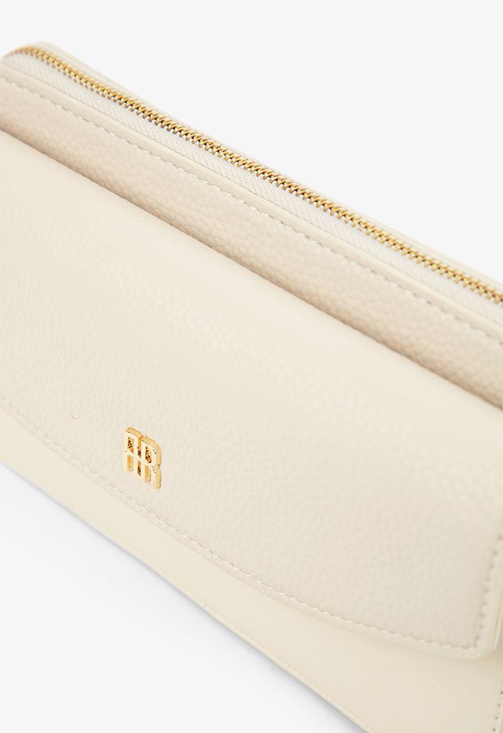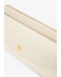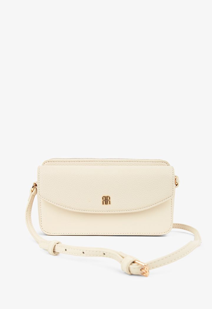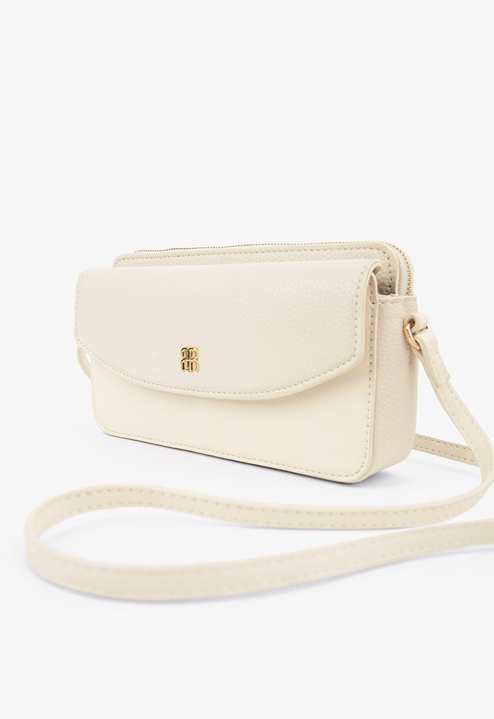 A luxurious choice for a crossbody bag, featuring a solid PU leather design and a metallic emblem in the center.