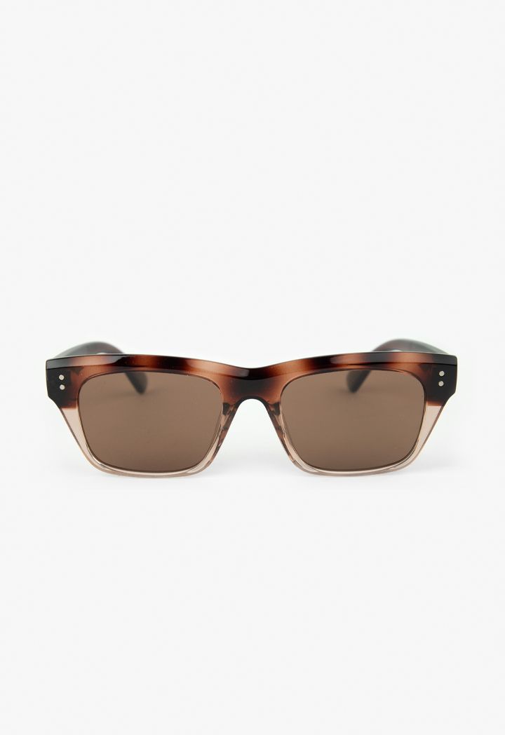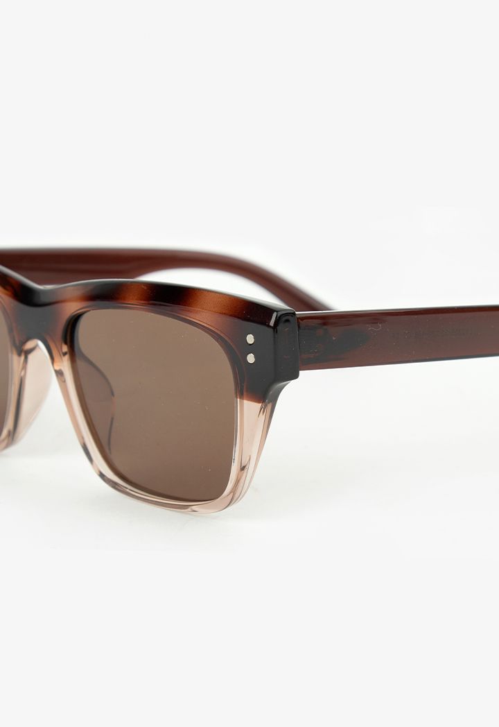 An elegant pair of sunglasses that features a rectangular rimmed frame with a two toned design.