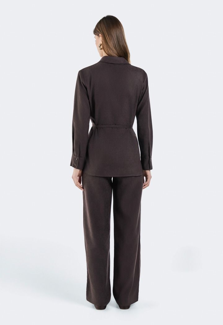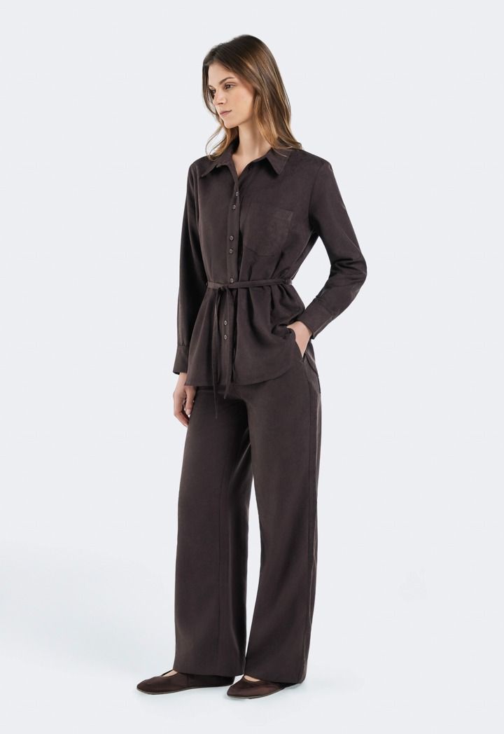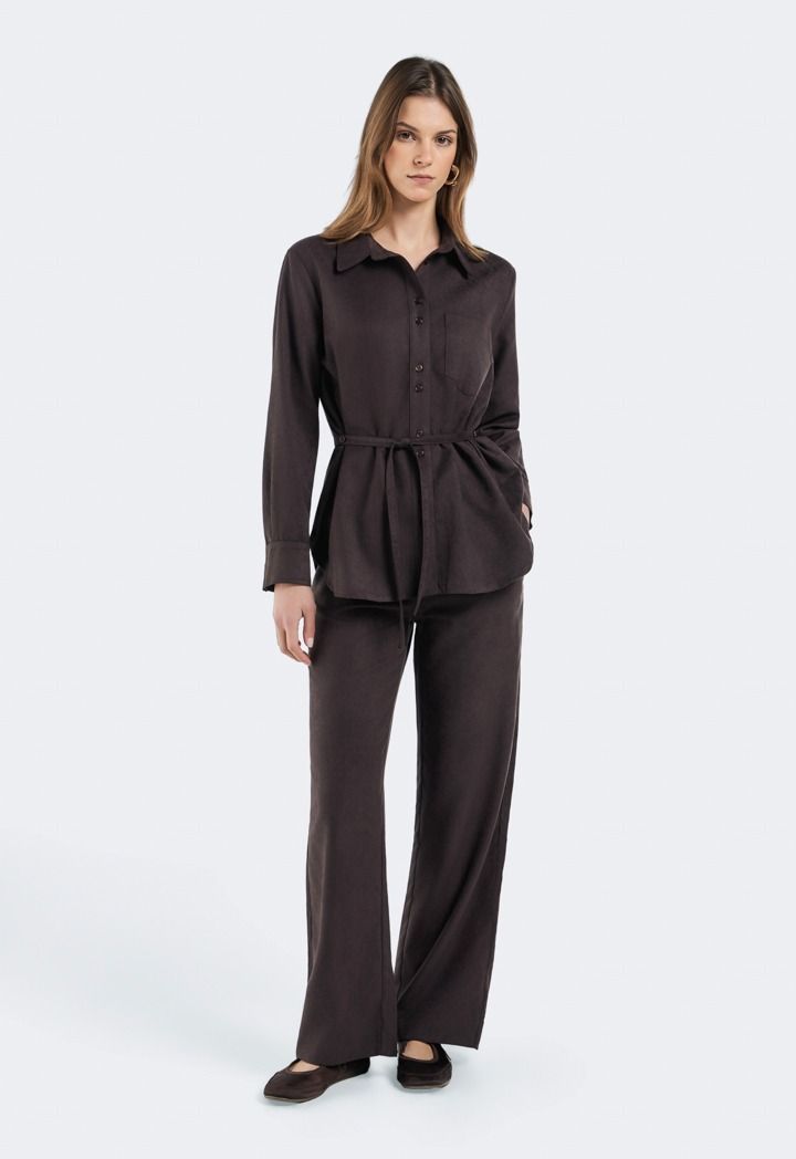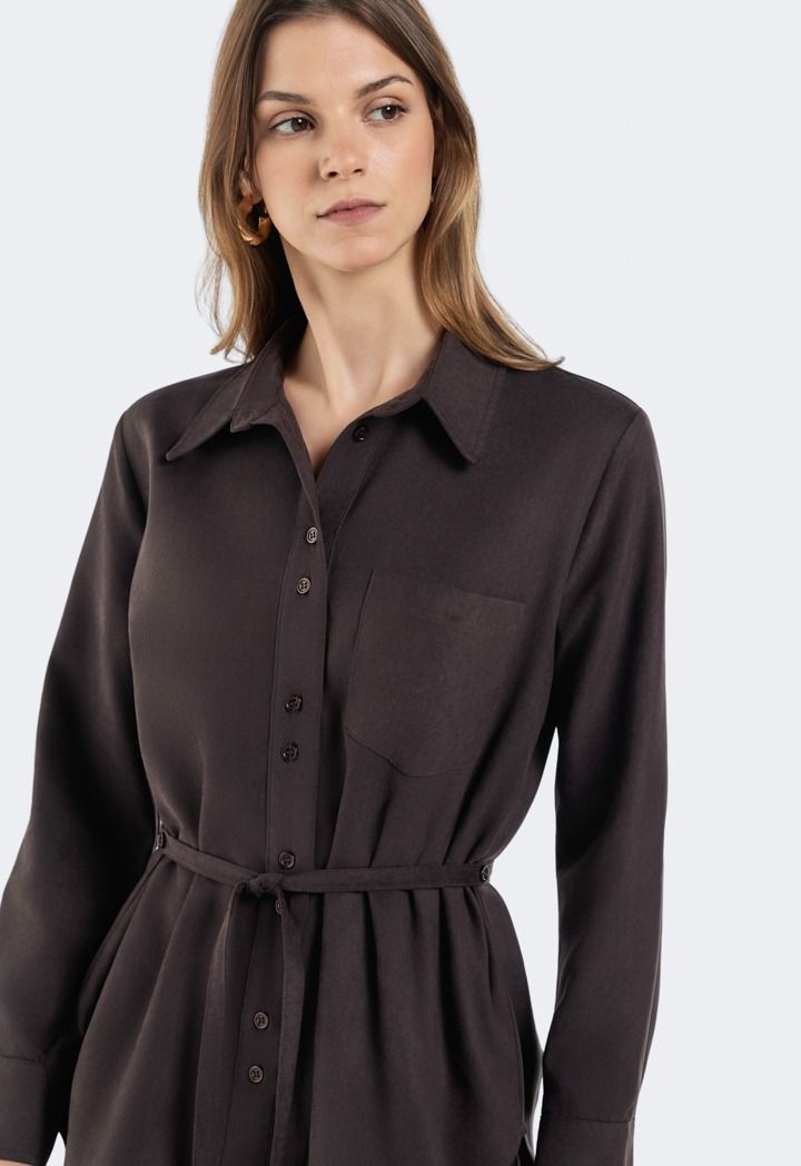 Design: Solid, Regular Fit, Belted, Patch Pocket